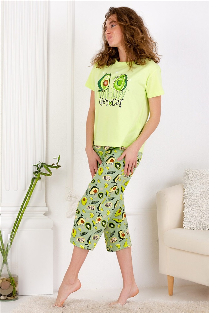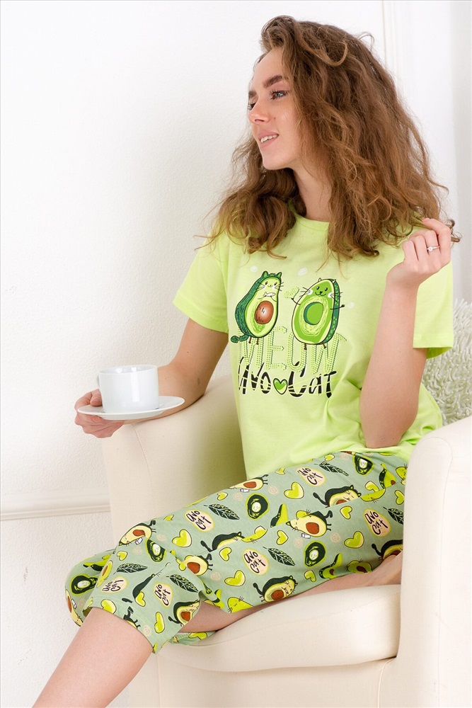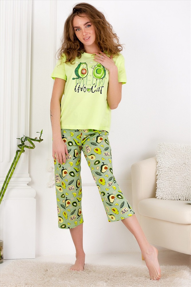 ID товара: 649614 Состав: 100% Хлопок Сезон: Весна/Лето Длина: Средняя Фасон: Повседневный Рукав: Короткий Основная ткань: Хлопок | Кулирка Стиль: Повседневный Страна бренда: Россия Страна производства: Россия Уютная пижамка с оригинальным принтом "Авокэт". Футболка со спущенной линией плеча, бриджи свободного кроя. Можно использовать как домашний костюм. Рекомендуется деликатная стирка. Комментарии к товару