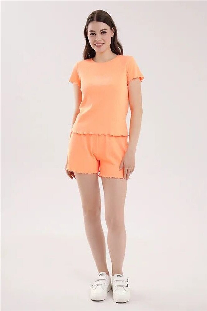 ID товара: 1199091 Состав: 48% Хлопок, 47% Полиэстер, 5% Эластан Сезон: Демисезон Длина: Средняя Фасон: Прямой Рукав: короткие Основная ткань: Хлопок Страна бренда: Россия Страна производства: Россия Пижама для дома и отдыха из трикотажного полотна кашкорсе. Футболка прямого кроя, короткий втачной рукав. Округлая горловина с обтачкой и застилом. Шорты прямые с внутренней резинкой. По низу футболки, рукавов и шорт мелкий оверлок. Комментарии к товару