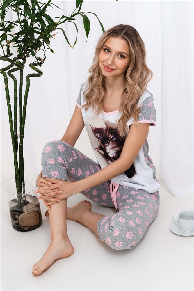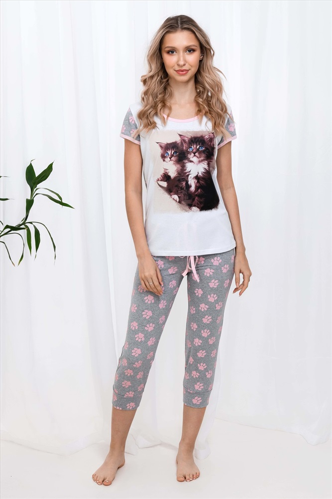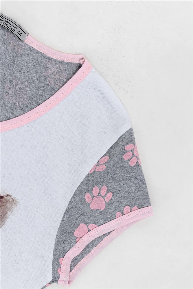 Состав: 100% хлопок Модель: Пижама Два котенка бриджи Тип товара: пижама с бриджами Материал: кулирка | кулирка Бренд: Натали Суслова Карман: боковые Назначение: для дома НДС: 5% Отделка: с карманами | с манжетами | с печатью | со шнурком Рейтинг: Рейтинг 4 и выше Рисунок: крупный принт | зверюшки Рукав: короткий рукав Силуэт: прилегающий Стиль: домашний | молодежный Пижама из кулирки футболка + бриджи. Светлая футболка с розовой окантовкой, принт в виде котят, серые вставки с кошачьими следами. Серые бриджи с узором в виде следов, розовая окантовка карманов, шнурок на поясе, длина чуть ниже коленей. Таблица размеров и весафутболка