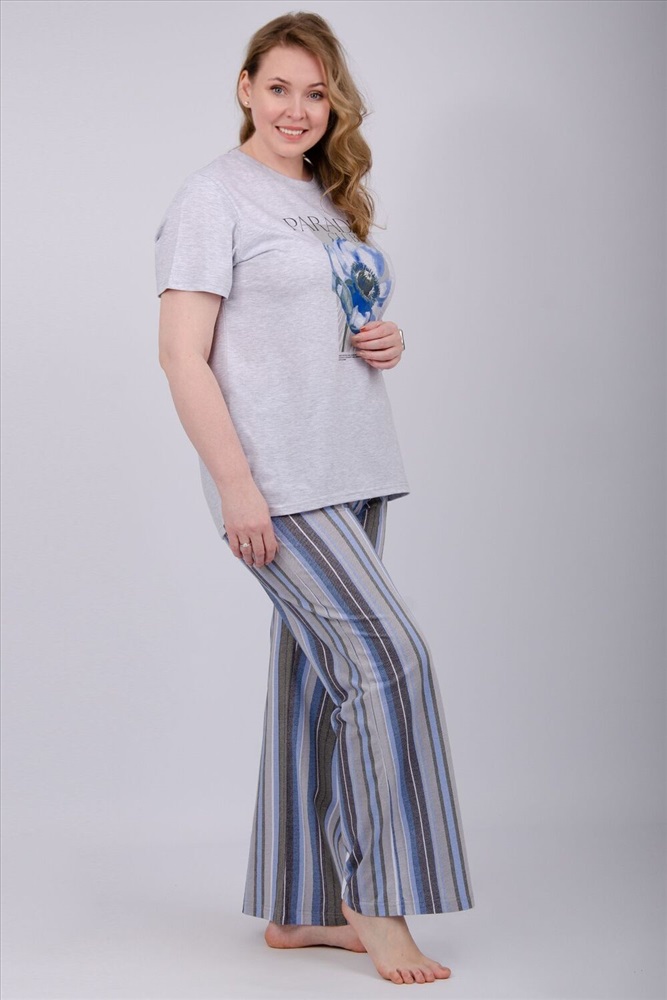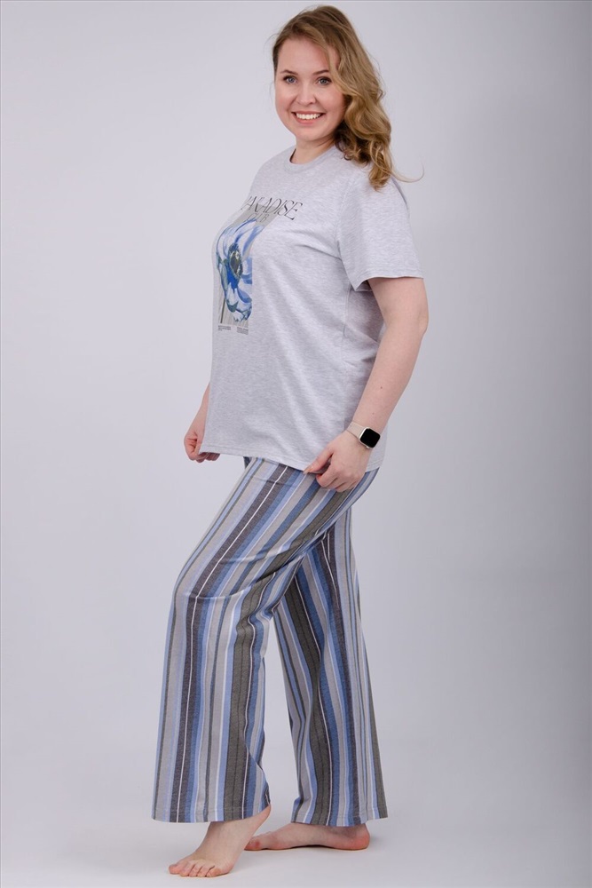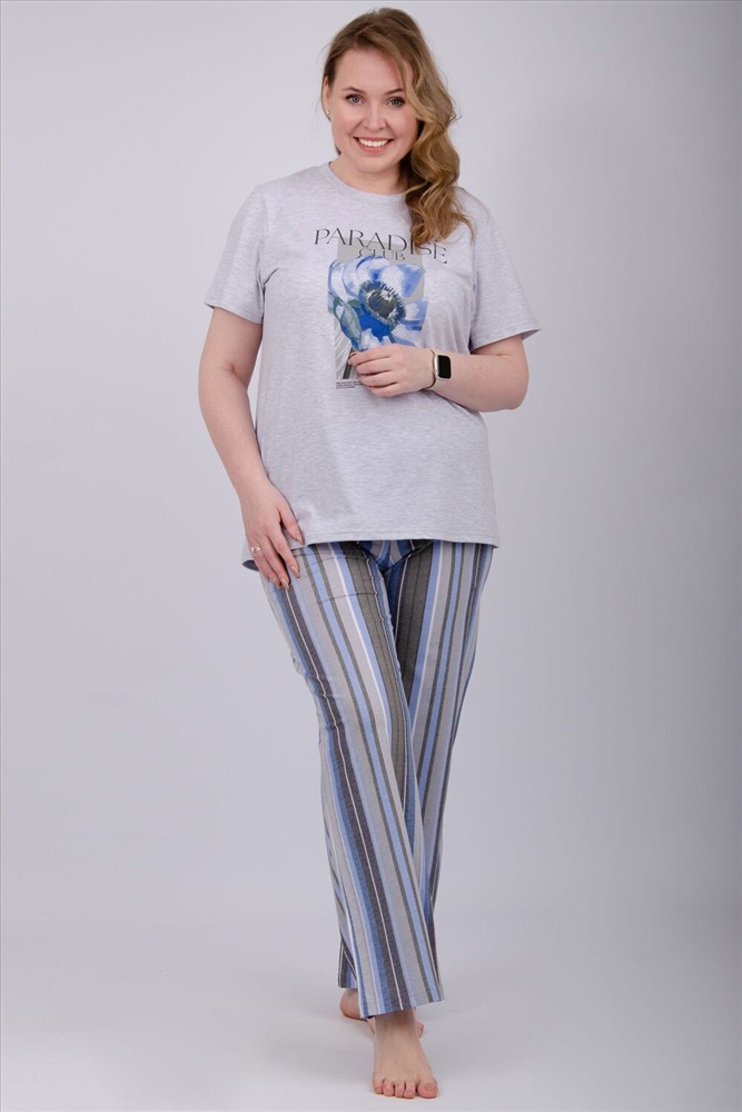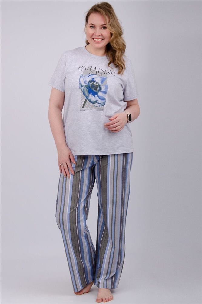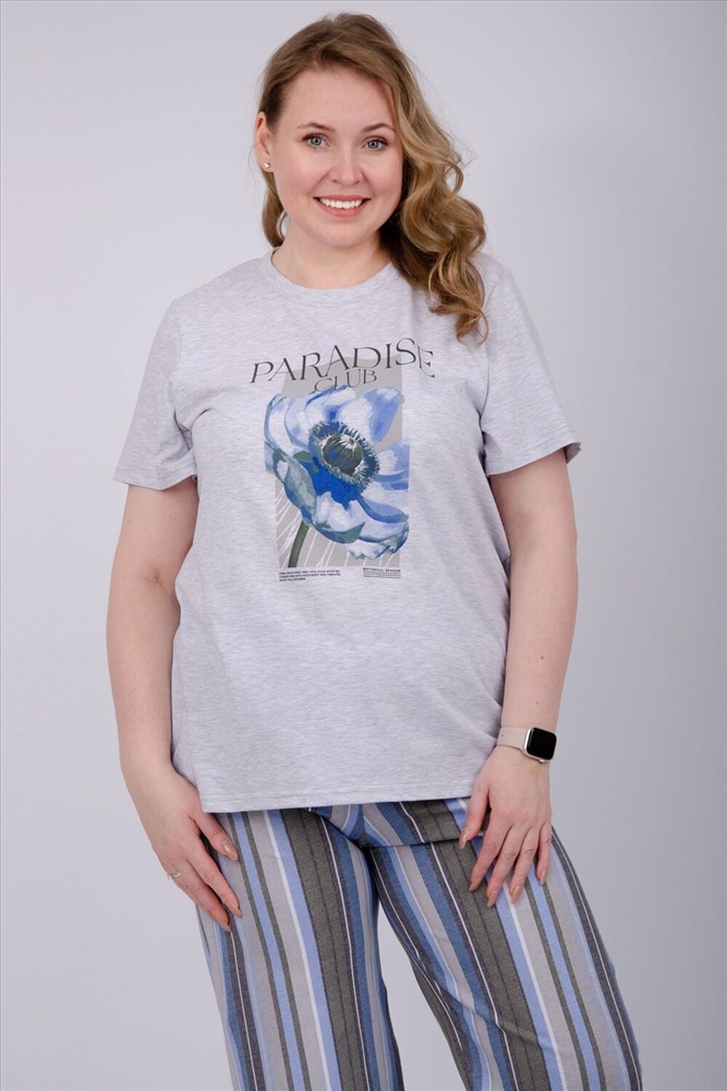 Состав: 80% хлопок, 20% полиэстер Модель: Пижама Флористика 2 Тип товара: пижама с брюками Материал: кулирка | кулирка Бренд: Malina Карман: без карманов Назначение: для дома НДС: 5% Особенности: на резинке Посадка: средняя посадка Рисунок: надпись | цветы Рукав: короткий рукав Сезонность: лето | осень | весна | зима Силуэт: оверсайз | прямой | свободный Стиль: домашний Воротник: без воротника Застежка: без застежки Наша пижама выполнена из мягкого и приятного на ощупь трикотажа, который обеспечивает максимальный комфорт во время сна и отдыха. Материал прекрасно дышит, не вызывает аллергии и раздражения кожи. Благодаря своей структуре он сохраняет тепло в холодное время года, и создает ощущение легкости и свежести в летнее время. Пижама представлена в нескольких размерах, включая большие, чтобы каждая женщина могла найти подходящий вариант, который подходит именно вам. Таблица размеров и весафутболка