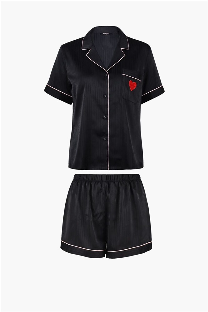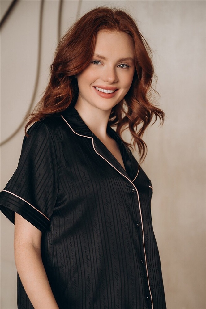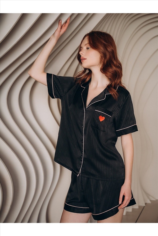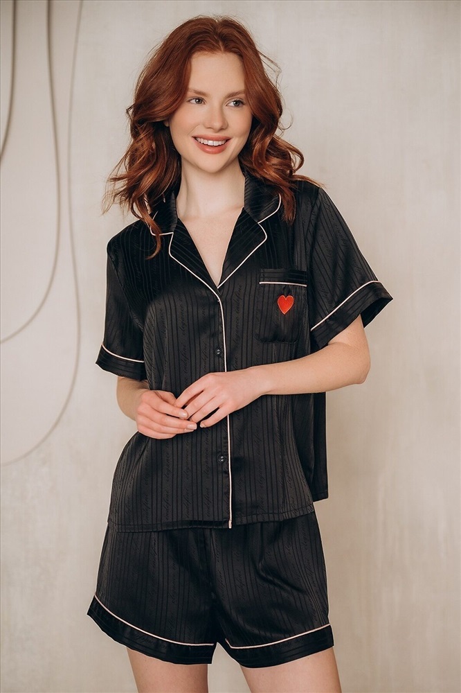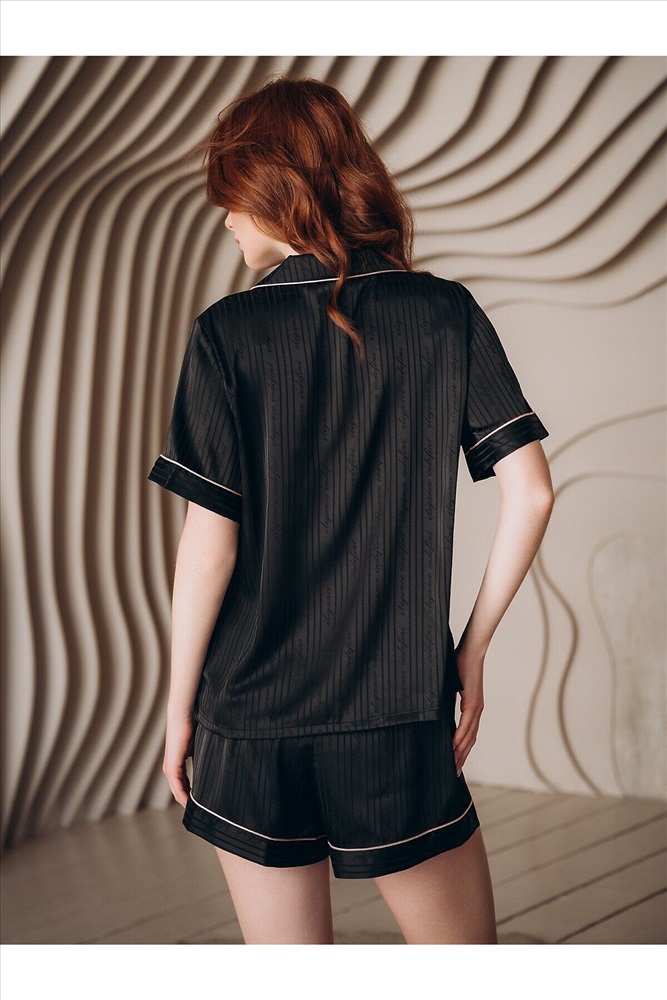 ID товара: 1213323 Состав: 100% Полиэстер Сезон: Демисезон Длина: Средняя Фасон: Прямой Рукав: короткие Вид застежки: Пуговицы Основная ткань: Полиэстер Страна бренда: Россия Страна производства: Китай Домашняя пижама от торговой марки Индефини. В комплект входит рубашка и шорты. Рубашка из полиэстера, черного цвета, с принтом-нашивкой, с короткими рукавами, с обрамлением, с воротником-отворотом, с кармашком на груди, на пуговичках, прямая, свободного кроя. Шорты из полиэстера, черного цвета, с принтом, с обрамлением, свободного кроя, на мягкой резинке. Комментарии к товару