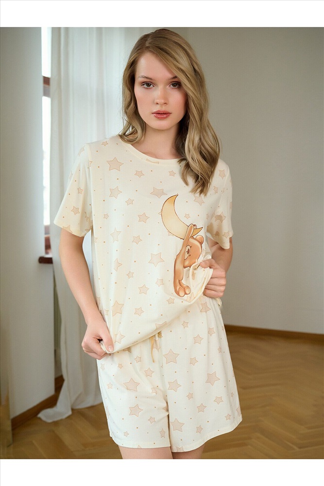 ID товара: 1214372 Состав: 47.5% Модал 47.5% Хлопок 5% Эластан Сезон: Демисезон Длина: Средняя Фасон: Свободный крой Рукав: короткие Декоративные элементы: Принт Основная ткань: Модал Страна бренда: Россия Страна производства: Китай Женская пижама с принтом. Комментарии к товару