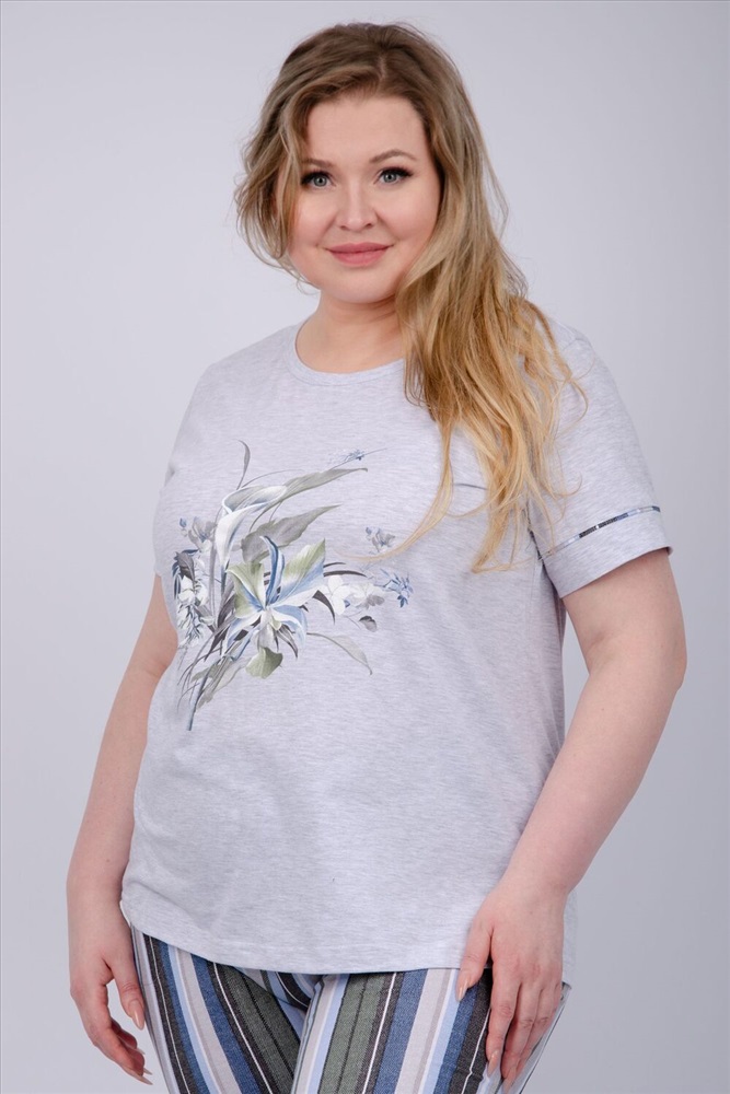 Застежка: без застежки Пижама женская со штанами изготовлена из мягкой ткани (100 % хлопка), которая обладает дышащими и влаговпитывающими свойствами, идеально подходит для сна, обеспечивает максимальную практичность и воздухопроницаемость, облегчая сон даже в самые жаркие и холодные ночи. Женский домашний костюм состоит из стильной тонкой ночной футболки с коротким рукавом и легких брюк, которые создают комфортный домашний уют дома. Милая женская пижамка украшена принтом. Пижама женская яркая и в тоже время нежная, идеальна для беременных, будущих мам или в роддом, ведь в этой пижаме для беременных удобно весь день. Носить можно в любое время года: осенью или даже зимой под согревающим одеялом.