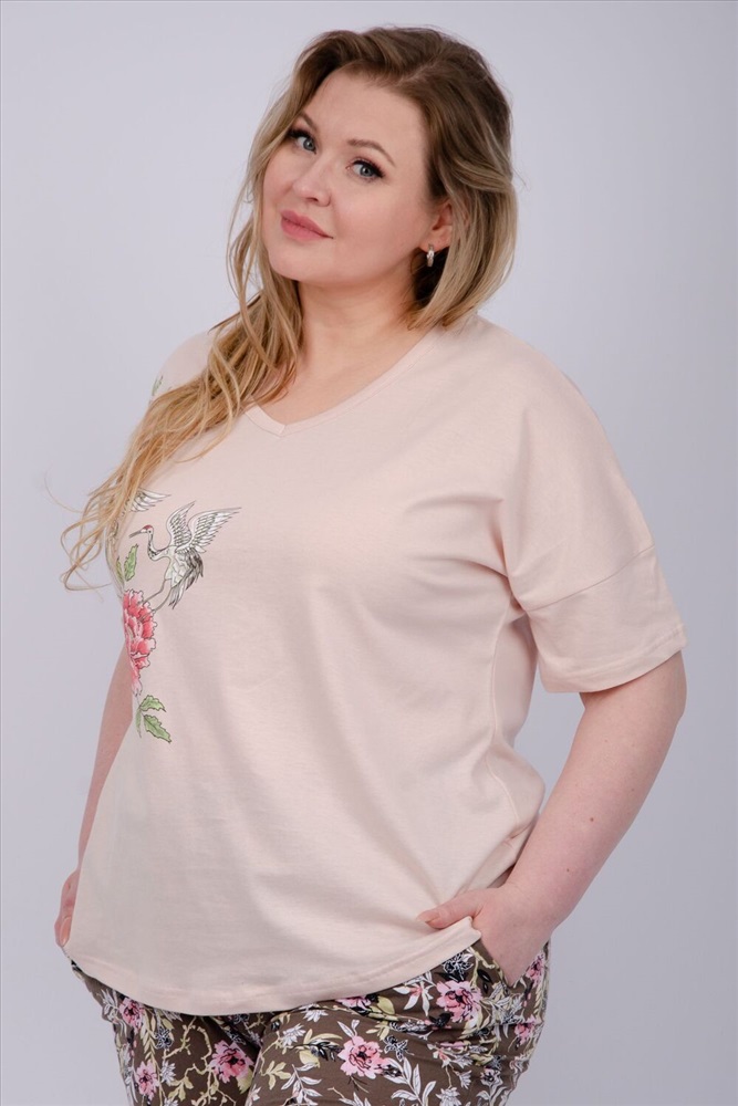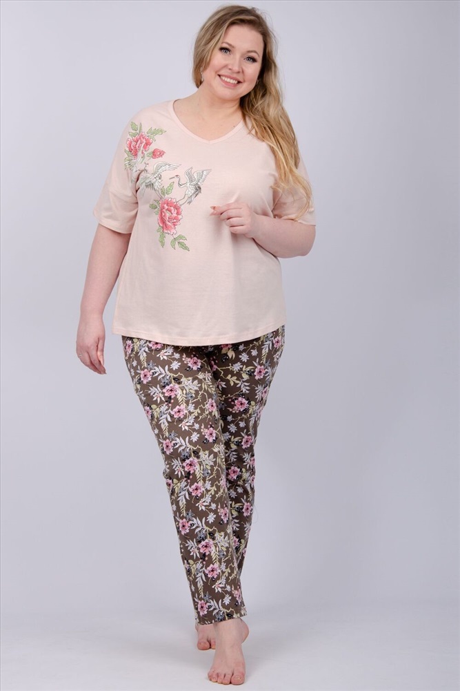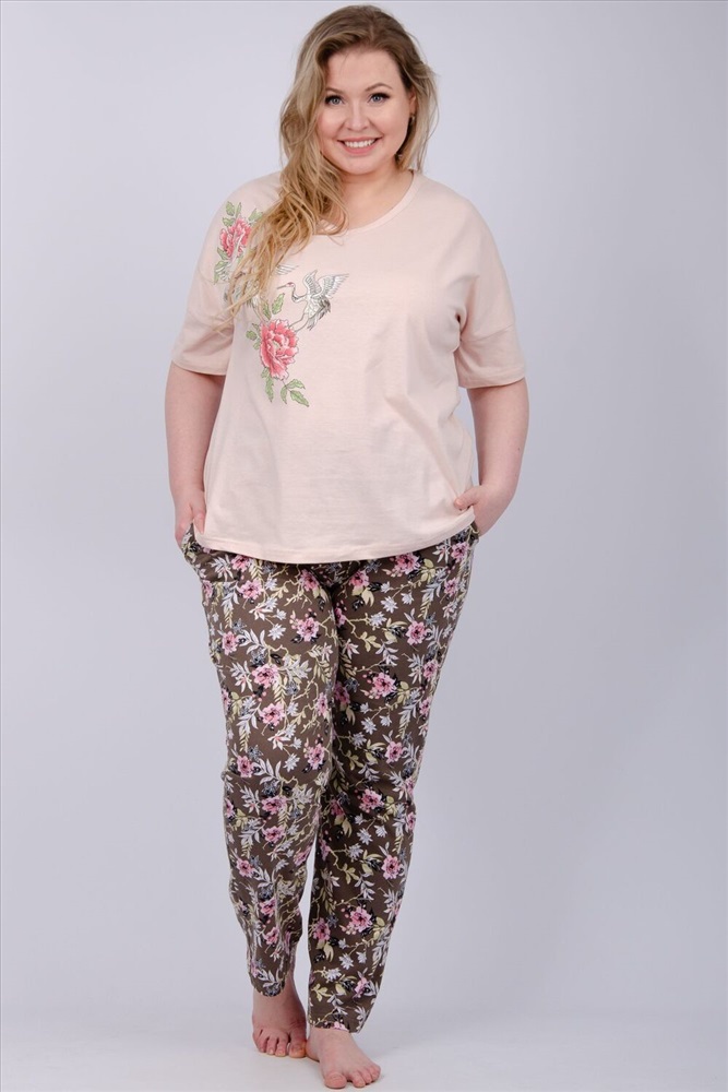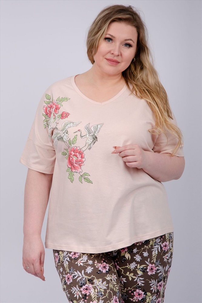 Состав: 100% хлопок Модель: Пижама Мальта Тип товара: пижама с брюками Материал: кулирка | кулирка Бренд: Malina Карман: боковые | прорезные Назначение: для дома НДС: 5% Особенности: на резинке Отделка: с карманами Посадка: высокая посадка Рисунок: цветы Рукав: короткий рукав Сезонность: лето | осень | весна | зима Силуэт: прямой | свободный Стиль: домашний Воротник: без воротника Застежка: без застежки Наша пижама выполнена из мягкого и приятного на ощупь трикотажа, который обеспечивает максимальный комфорт во время сна и отдыха. Материал прекрасно дышит, не вызывает аллергии и раздражения кожи. Благодаря своей структуре он сохраняет тепло в холодное время года, и создает ощущение легкости и свежести в летнее время. Пижама представлена в нескольких размерах, включая большие, чтобы каждая женщина могла найти подходящий вариант, который подходит именно вам. Таблица размеров и весафутболка
