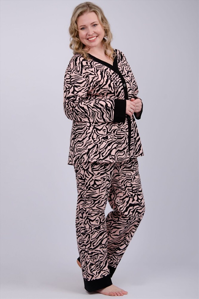 Состав: 100% хлопок Модель: Пижама Нега Тип товара: пижама с брюками Материал: кулирка | кулирка Бренд: Malina Карман: без карманов Назначение: для дома НДС: 5% Особенности: на резинке Отделка: с манжетами Посадка: высокая посадка Рисунок: анималистичный Рукав: длинный рукав Сезонность: лето | осень | весна | зима Силуэт: свободный Стиль: домашний Воротник: без воротника Застежка: пуговицы Наша пижама выполнена из мягкого и приятного на ощупь трикотажа, который обеспечивает максимальный комфорт во время отдыха. Материал прекрасно дышит, не вызывает аллергии и раздражения кожи. Благодаря своей структуре он сохраняет тепло в холодное время года, и создает ощущение легкости и свежести в летнее время. Пижама представлена в нескольких размерах, включая большие, чтобы каждая женщина могла найти подходящий вариант, который подходит именно вам. Таблица размеров и весакофта