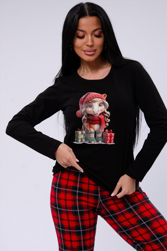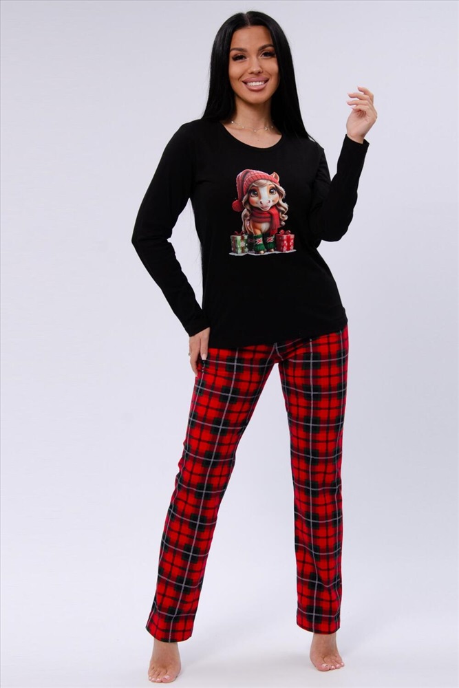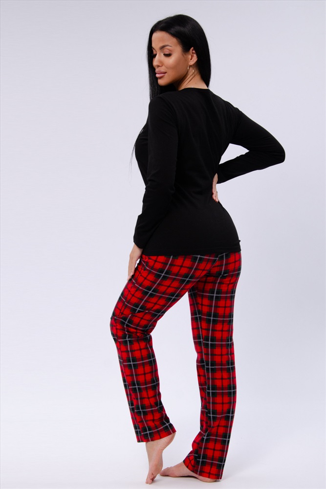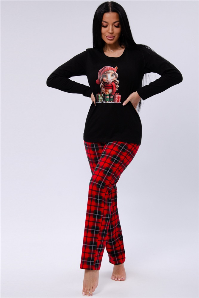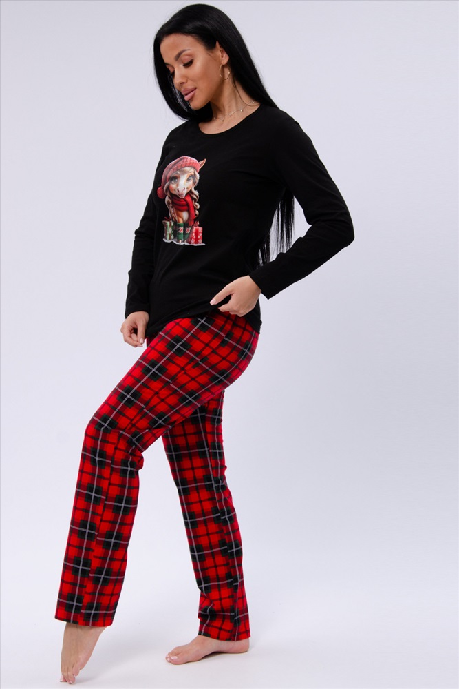 Застежка: без застежки Пижама женская со штанами изготовлена из мягкой ткани (100 % хлопка), которая обладает дышащими и влаговпитывающими свойствами, идеально подходит для сна, обеспечивает максимальную практичность и воздухопроницаемость, облегчая сон даже в самые жаркие и холодные ночи. Женский домашний костюм состоит из тонкого хлопкового лонгслива и легких брюк, которые создают комфортный домашний уют дома. Милая женская пижамка украшена новогодним принтом (символ нового года). Пижама женская яркая и в тоже время нежная, идеальна для беременных, будущих мам или в роддом, ведь в этой пижаме для беременных удобно весь день. Носить можно в любое время года: осенью или даже зимой под согревающим одеялом.