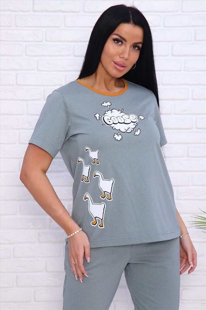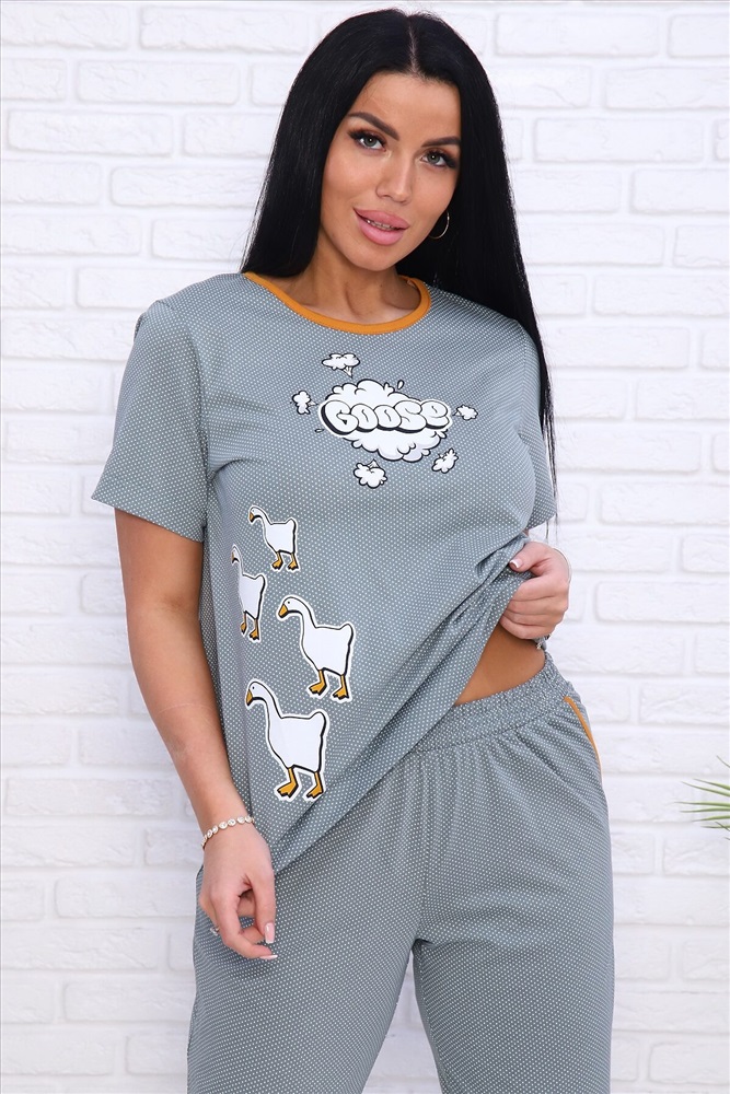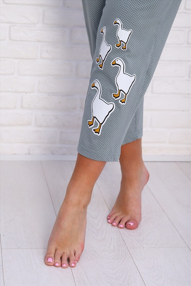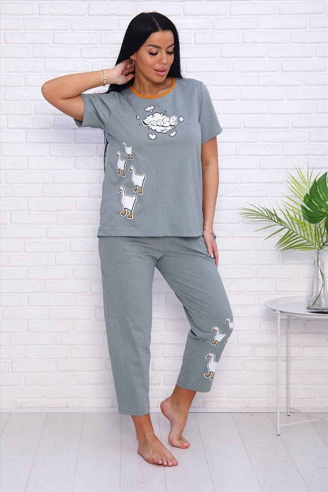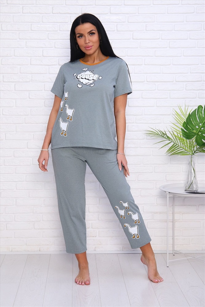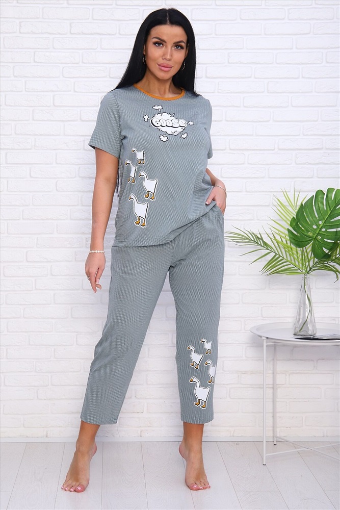 ID товара: 960330 Состав: Хлопок 100% Сезон: Демисезон Длина: Полная Фасон: Полуприлегающий Рукав: короткие Декоративные элементы: Принт Основная ткань: Хлопок Вид ткани: Кулирка Страна бренда: Россия Страна производства: Россия Пижама женская Гусь: бриджи с карманами в борковых швах, карманы с декоративной окантовкой, милый принт на левой штанине; футболка прямого кроя, с короткими рукавами с принтом на полочке. Модель дарит отличное настроение и комфорт 100%-ого хлопка! Комментарии к товару