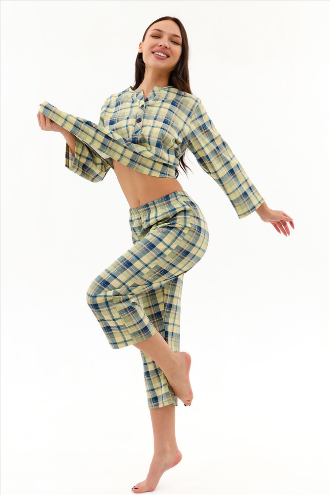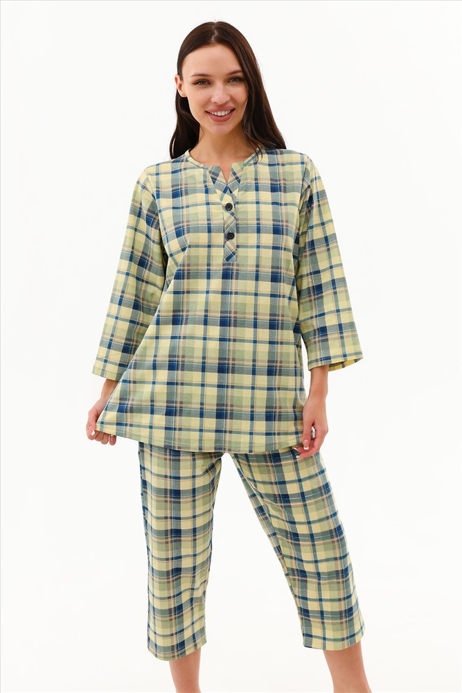ID товара: 957450 Состав: Хлопок 100% Сезон: Демисезон Длина: Средняя Фасон: Прямой Рукав: длинные Основная ткань: Хлопок Стиль: Повседневный Вид ткани: Кулирка Страна бренда: Россия Страна производства: Россия Пижама выполнена из комфортной приятной к телу ткани. Состоит из удлинённой кофты с застёжкой - поло и бридж. Низ кофты слегка закруглён к боковым срезам. Пижамка хорошо садиться на любой тип фигуры за счёт большого размера припусков на свободу облегания. Бриджи с высокой удобной посадкой на эластичной резинке 3 см. Качественно. Уютно. Для тебя. Носите с удовольствием. Комментарии к товару