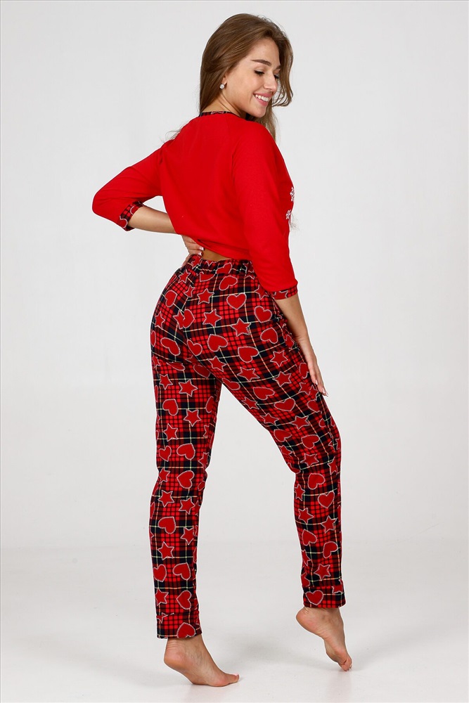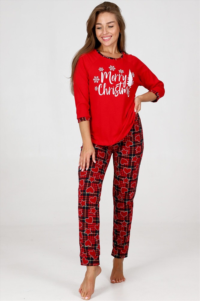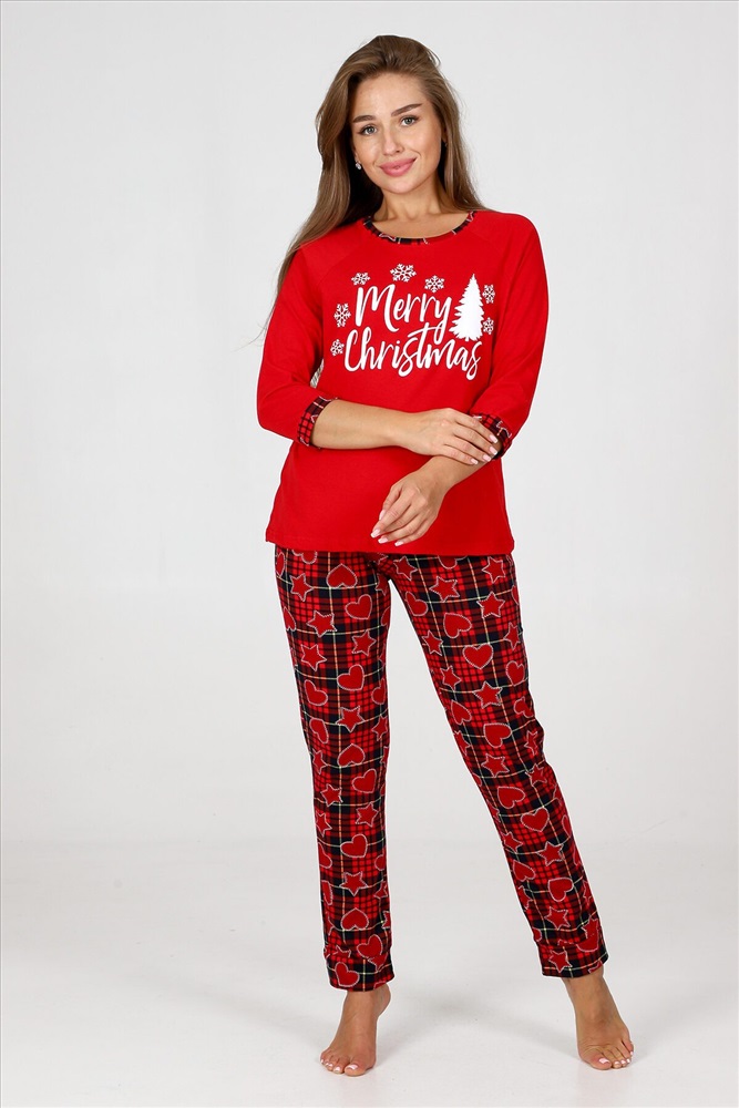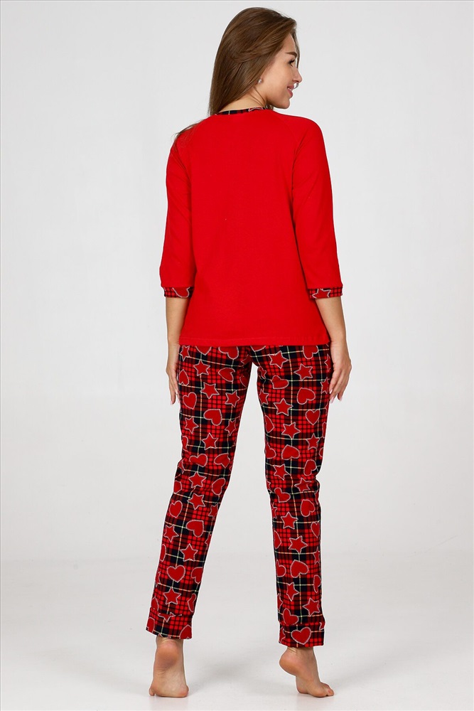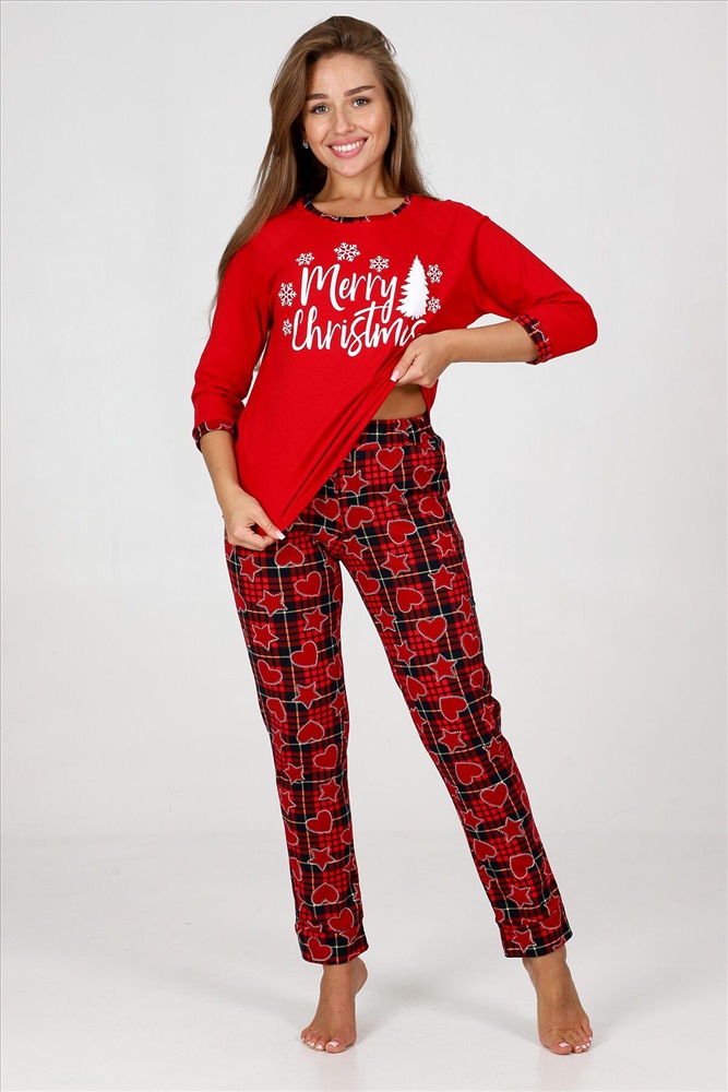 ID товара: 960876 Состав: 100% Хлопок Сезон: Осень/Зима Длина: Полная Фасон: Прямой Рукав: 3/4 Декоративные элементы: Принт Основная ткань: Хлопок Вид ткани: Кулирка Страна бренда: Россия Страна производства: Россия Пижама женская удобная и уютная вещь на каждый день. Джемпер с отделкой обтачки и манжеты контрастной тканью, стильная печать на груди, брюки зауженного кроя с карманами, манжеты внизу брюк. Комментарии к товару