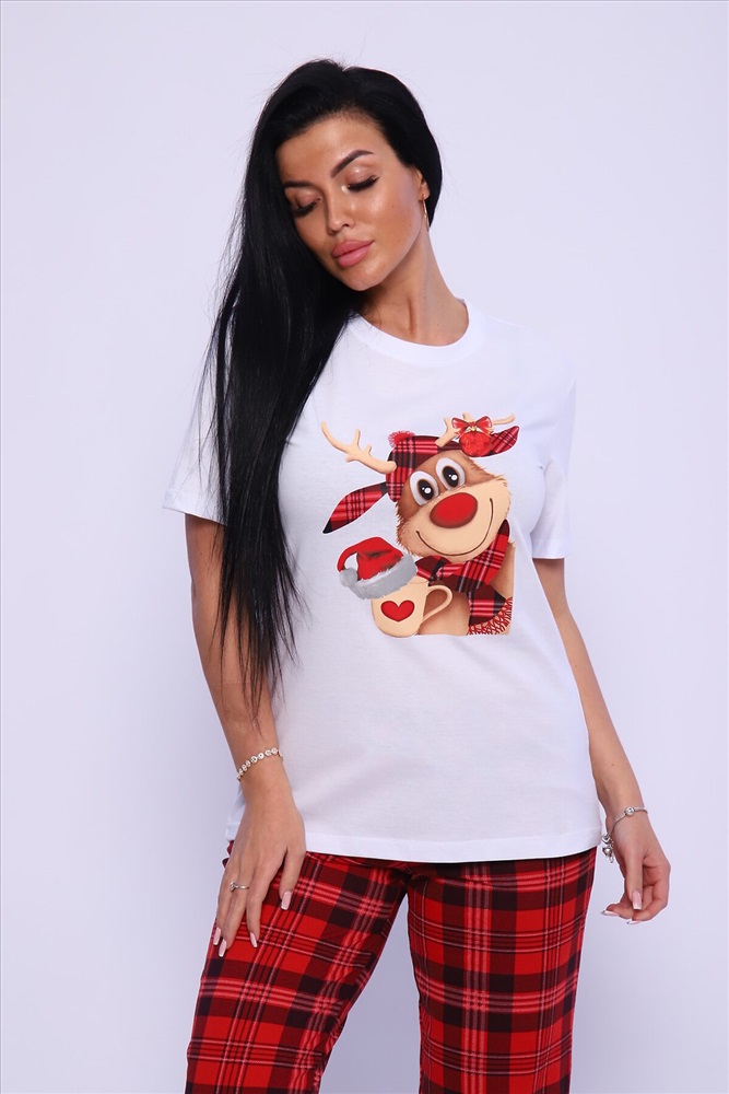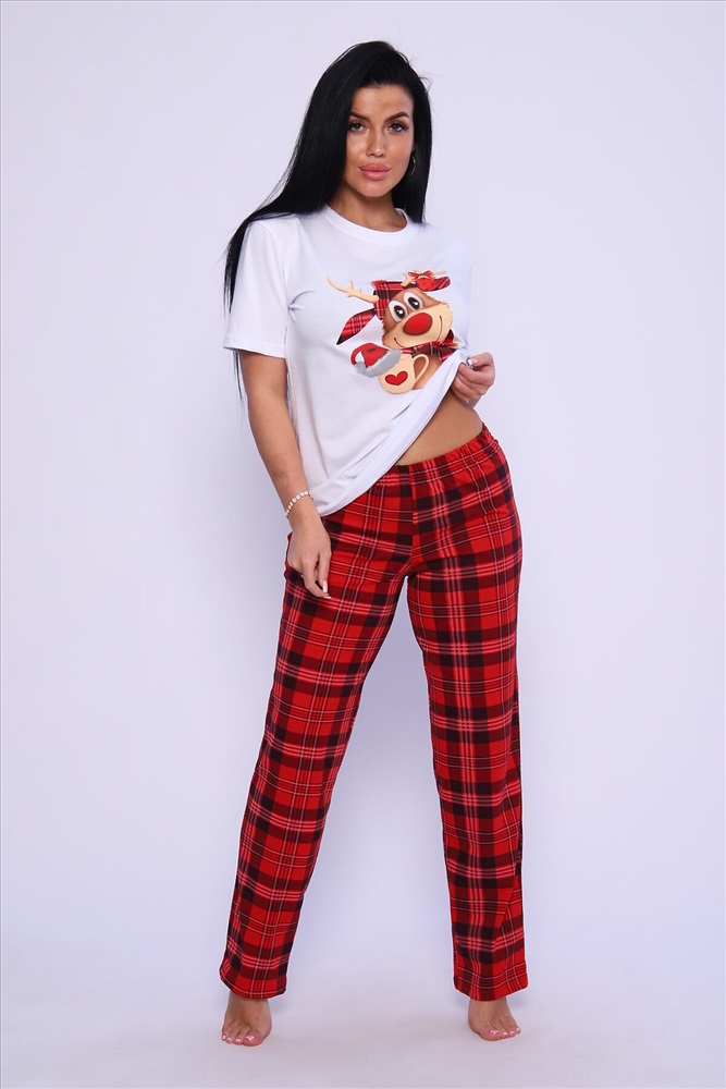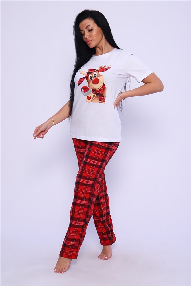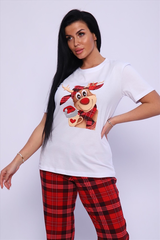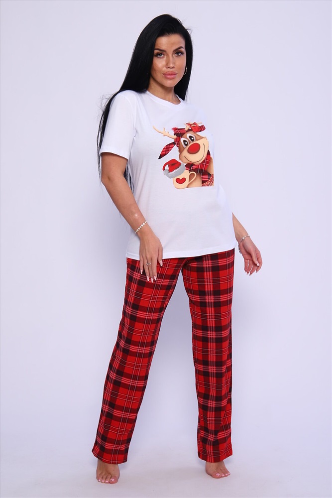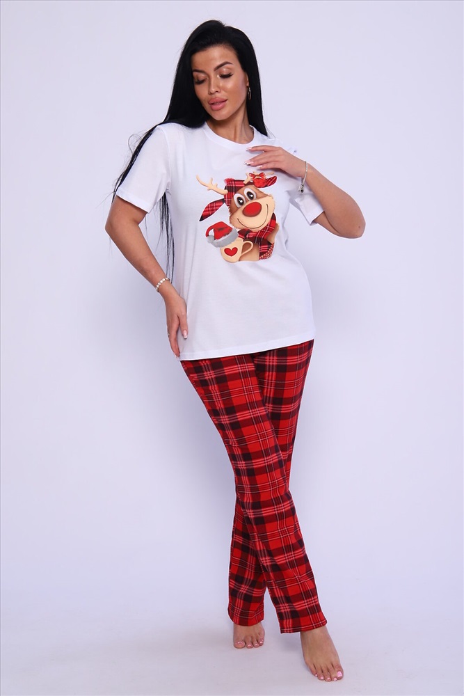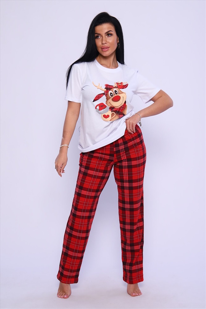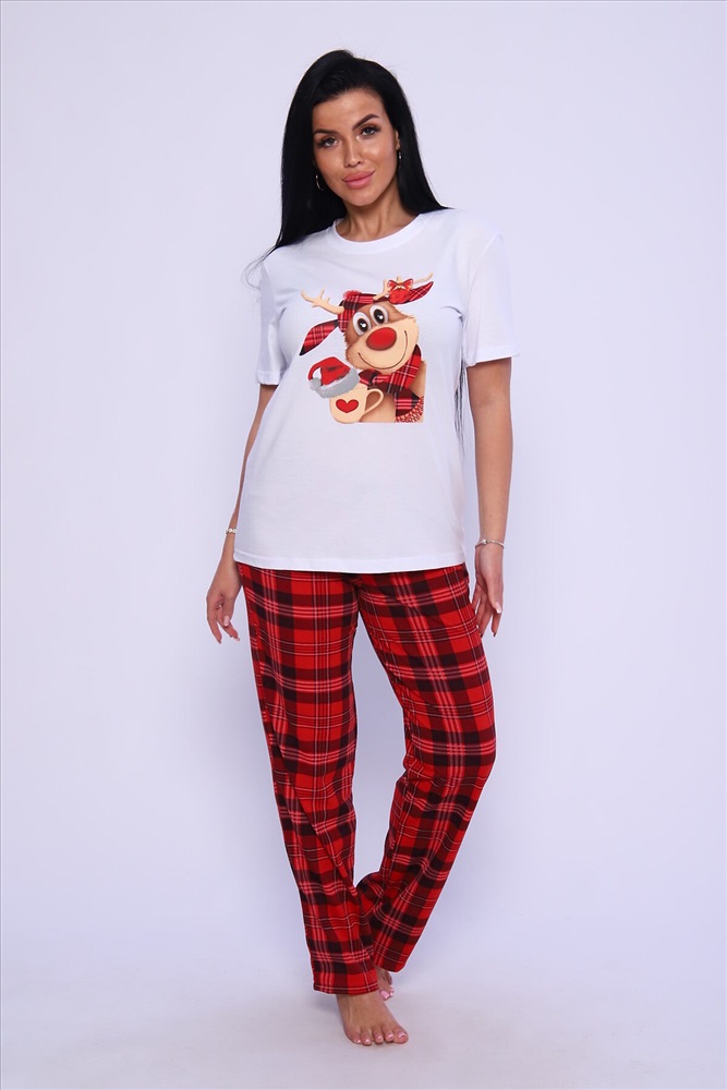 ID товара: 949097 Состав: 100% Хлопок Сезон: Демисезон Длина: Средняя Фасон: Прямой Рукав: короткие Основная ткань: Хлопок Стиль: Повседневный Вид ткани: Кулирка Страна бренда: Россия Страна производства: Россия Женская пижама с ярким принтом. Брюки и футболка свободного кроя. Комментарии к товару