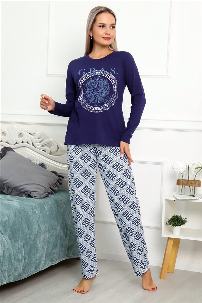 ID товара: 983033 Состав: 100% Хлопок Сезон: Демисезон Длина: Полная Фасон: Прямой Рукав: длинные Декоративные элементы: Принт Основная ткань: Хлопок Вид ткани: Кулирка Страна бренда: Россия Страна производства: Россия Пижама женская домашняя состоит из туники и брюк. Туника свободная, длиной до линии бедер, плечо спущенное, рукав втачной длинный. Горловина с обтачкой. На середине переда оригинальный принт. Брюки длинные, свободные без карманов. Пояс на резинке. Комментарии к товару