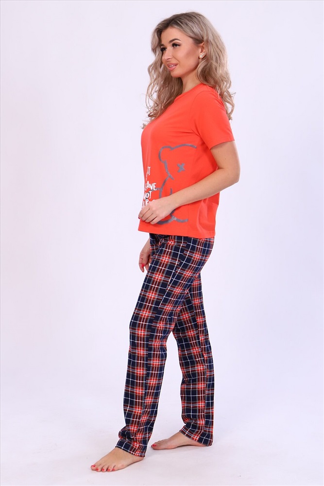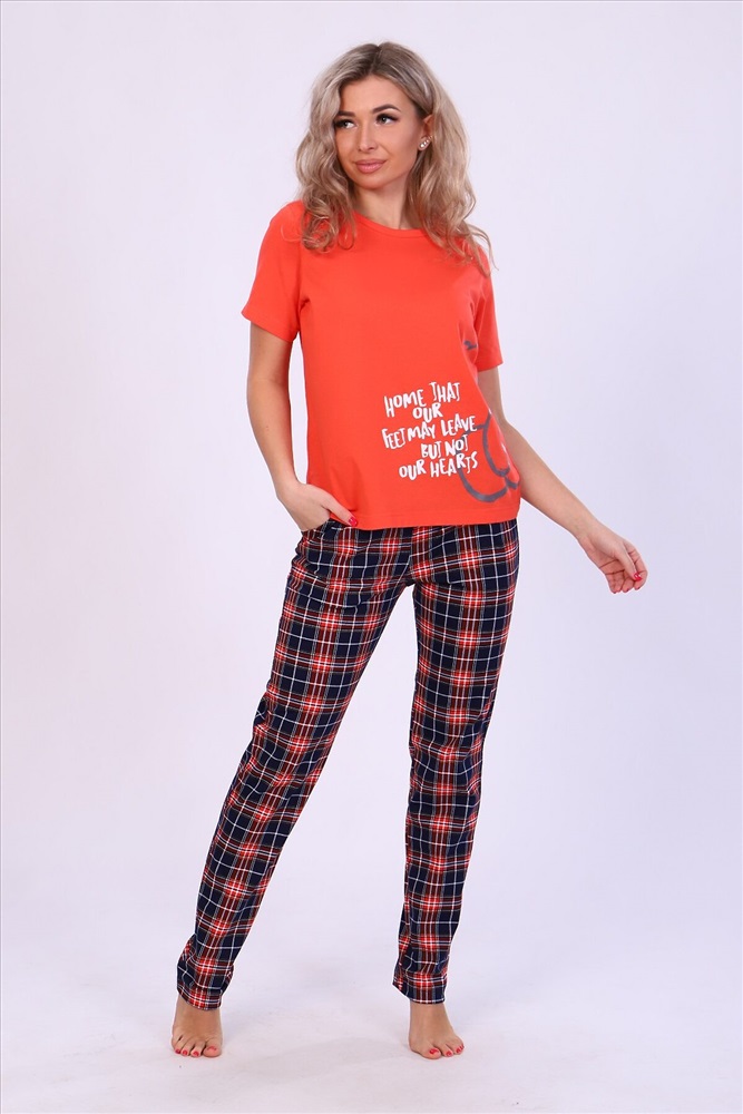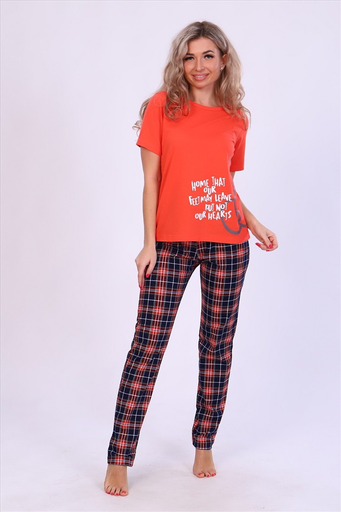 ID товара: 876222 Состав: Хлопок 100% Сезон: Демисезон Длина: Средняя Фасон: Прямой Рукав: длинные Основная ткань: Кулирка Стиль: Повседневный Страна бренда: Россия Страна производства: Россия Пижама женская: футболка с принтом на полочке, с коротким рукавом и брюки в клетку, с двумя карманами. Комфортная и мягкая на ощупь выполнена из трикотажного полотна, 100% хлопок. Модель представлена в двух модных стильных расцветках. Комментарии к товару