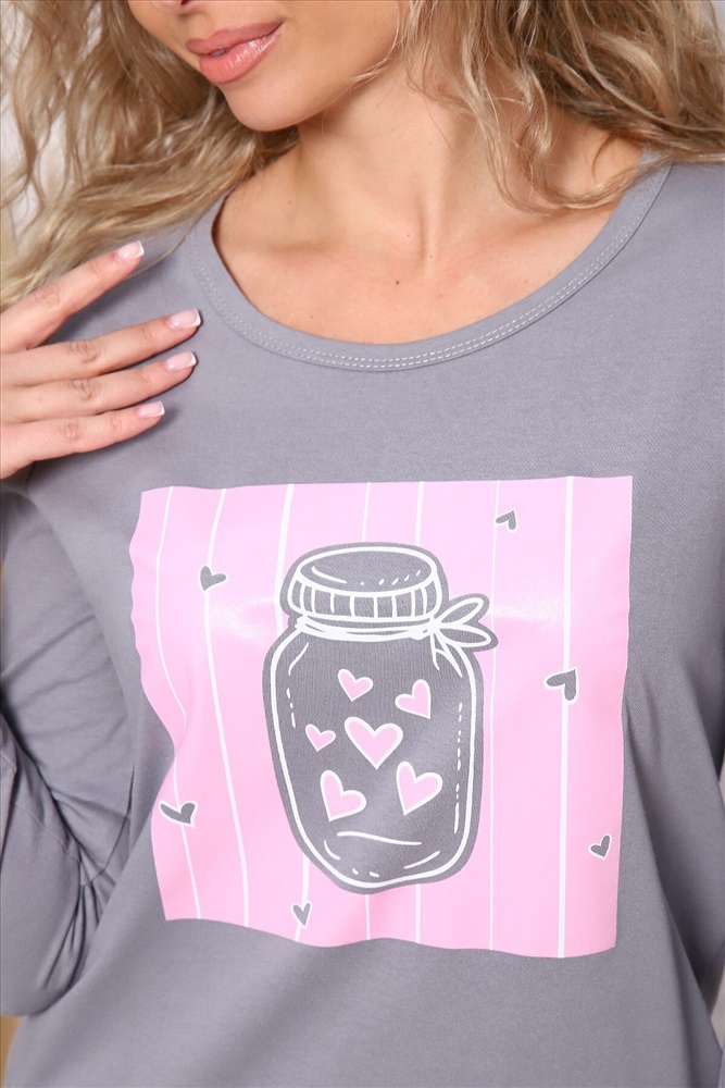 Страна производства: Россия Пижама женская Сердечки : брюки прямые с карманами по бокам, футболка с длинными рукавами и с принтом на полочке.
