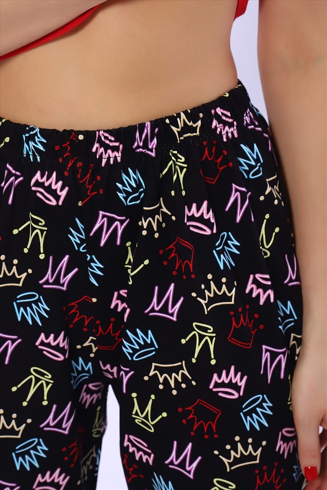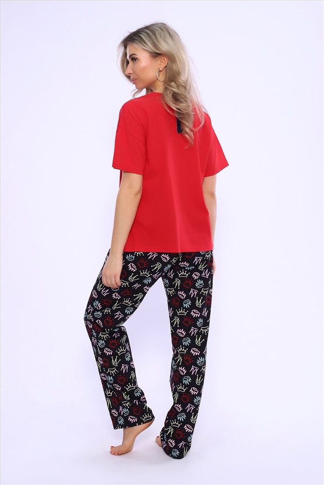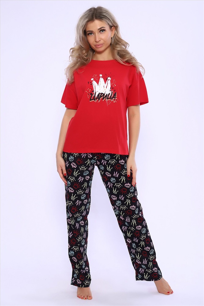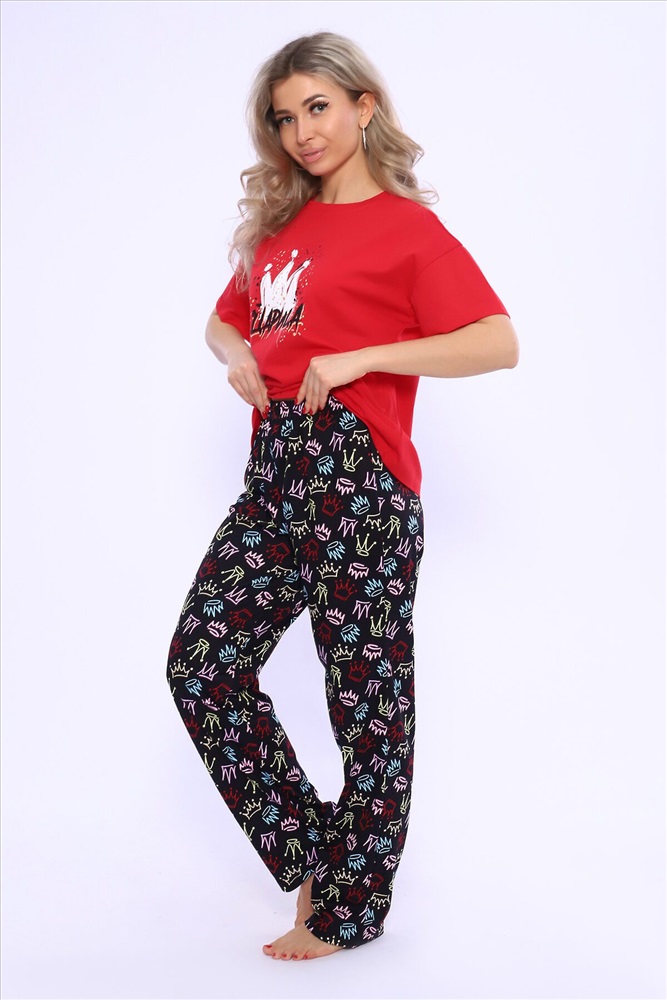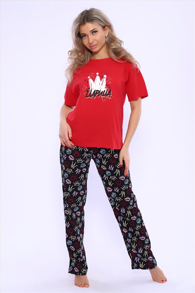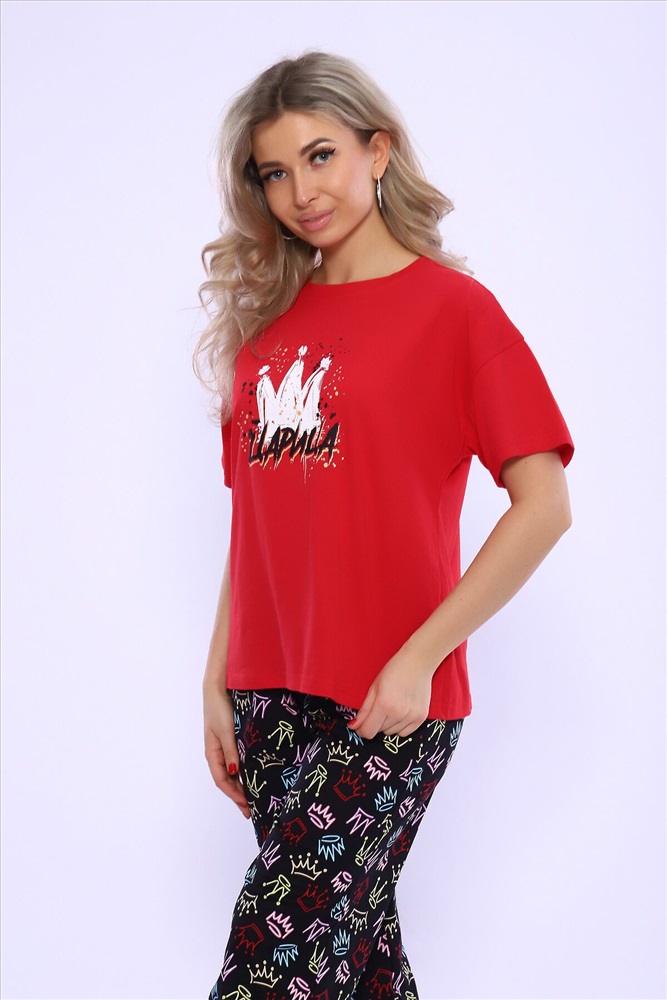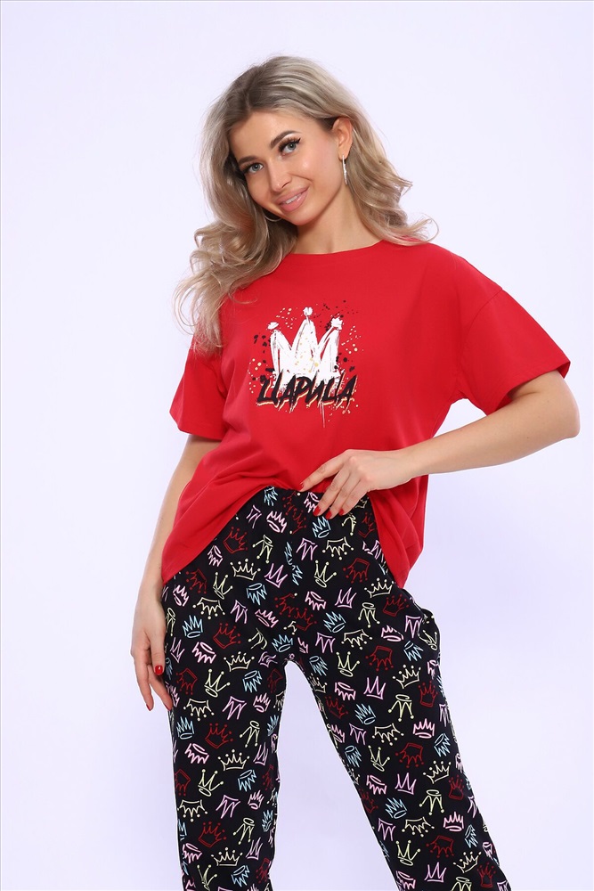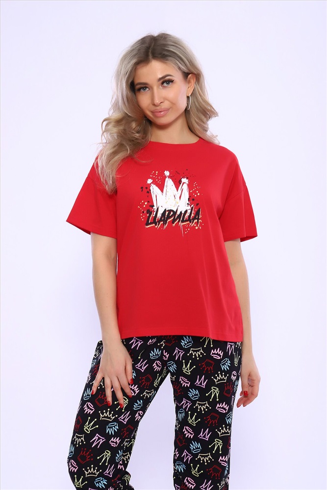 ID товара: 980741 Состав: 100% Хлопок Сезон: Весна/Лето Фасон: Прямой Рукав: Короткий Крой брючин: Прямой Рисунок: Фантазийный Вид ткани: Кулирка Страна бренда: Россия Страна производства: Россия Женский домашний костюм - пижама, состоящий из футболки и брюк Короны из трикотажного полотна 100%-го хлопка. Приятный дышащий материал идеален для изготовления домашней одежды. Футболка свободного кроя, с круглой горловиной и втачным спущенным коротким рукавом, в которой будет одинаково приятно спать и заниматься домашними делами. Оригинальный принт обязательно поднимет настроение. Шорты прямого силуэта свободного кроя. Пижамка не изменит свой внешний вид после стирки при соблюдении рекомендаций по уходу и будет долго вас радовать. Отличный подарок для всех девушек и женщин на 14 февраля, 8 марта и другие праздники! Параметры модели 165см, 90-68-98. На модели 46 размер. Комментарии к товару