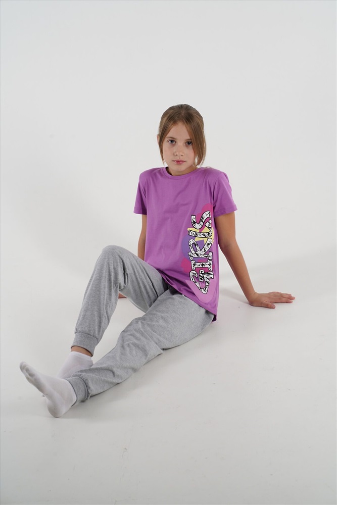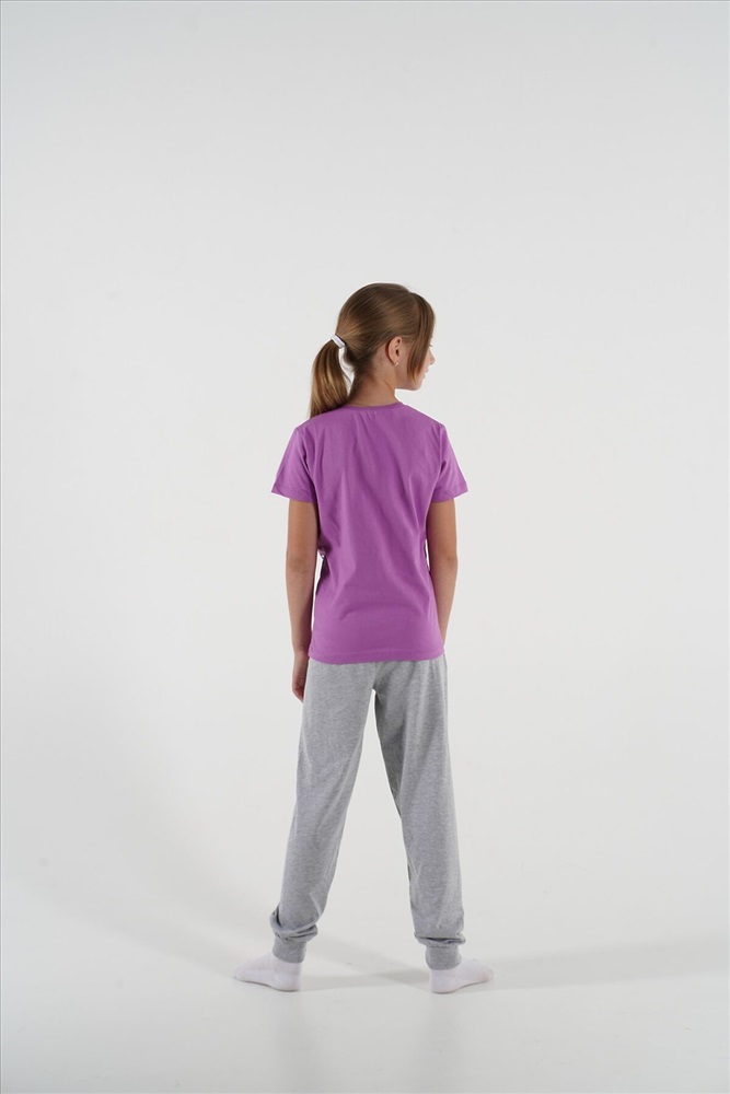 ID товара: 876069 Состав: 100% Хлопок Сезон: Демисезон Длина: Полная Фасон: Свободный крой Рукав: короткие Декоративные элементы: Принт Основная ткань: Кулирка Страна бренда: Россия Страна производства: Россия Пижама для девочки, состоящая из футболки и брюк. Элементы рисунка СВЕТЯТСЯ в темноте. Футболка для девочки прямого силуэта с втачным коротким рукавом. Низ изделия и рукавов обработан швом в подгибку, шириной 2 см, нитками в цвет изделия. Горловина круглая, обработана воротником из кулирки, в цвет изделия. Низ изделия обработан швом вподгибку, шириной 2 см, нитками в цвет изделия. На полочке принт, шелкография с флуоресцентной краской. Брюки прямого покроя. Пояс цельнокроеный, с эластичной тесьмой внутри, шириной 3 см, тесьма закреплена в шов. По низу изделия манжеты из рибаны в цвет изделия. Комментарии к товару