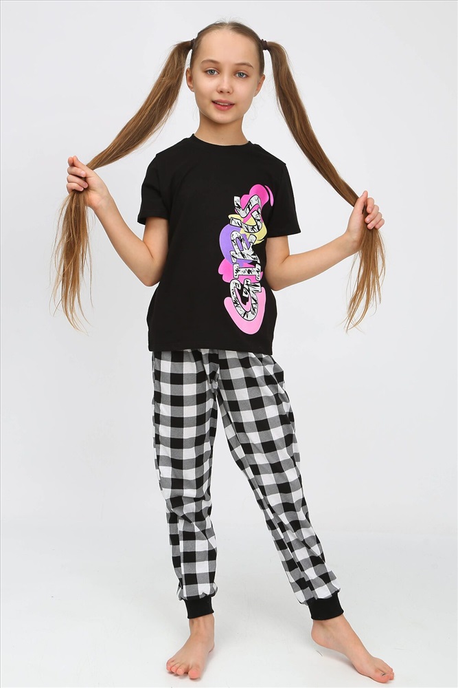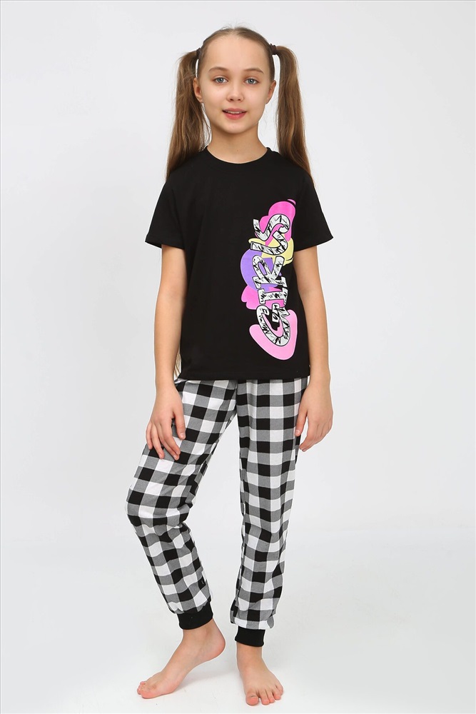 ID товара: 885619 Состав: 100% Хлопок Сезон: Демисезон Длина: Полная Фасон: Прямой Рукав: Длинные Декоративные элементы: Принт Основная ткань: Хлопок | Кулирка Страна бренда: Россия Страна производства: Россия Пижама детская, состоящая из джемпера и брюк. Джемпер прямого силуэта, с втачным длинным рукавом. Горловина круглая обработана воротником из рибаны. На полочке принт шелкография. Брюки прямого покроя, из набивного полотна. По низу изделия манжеты из рибаны. Комментарии к товару