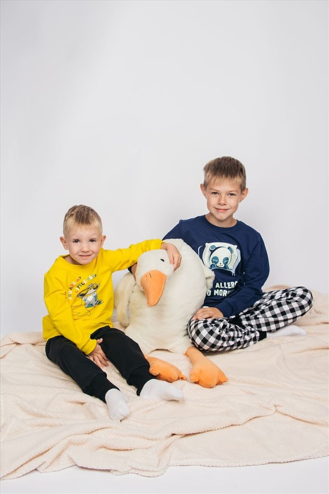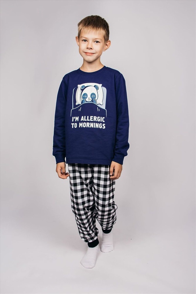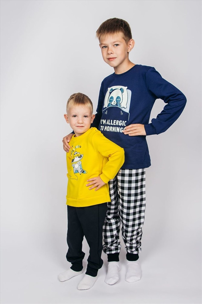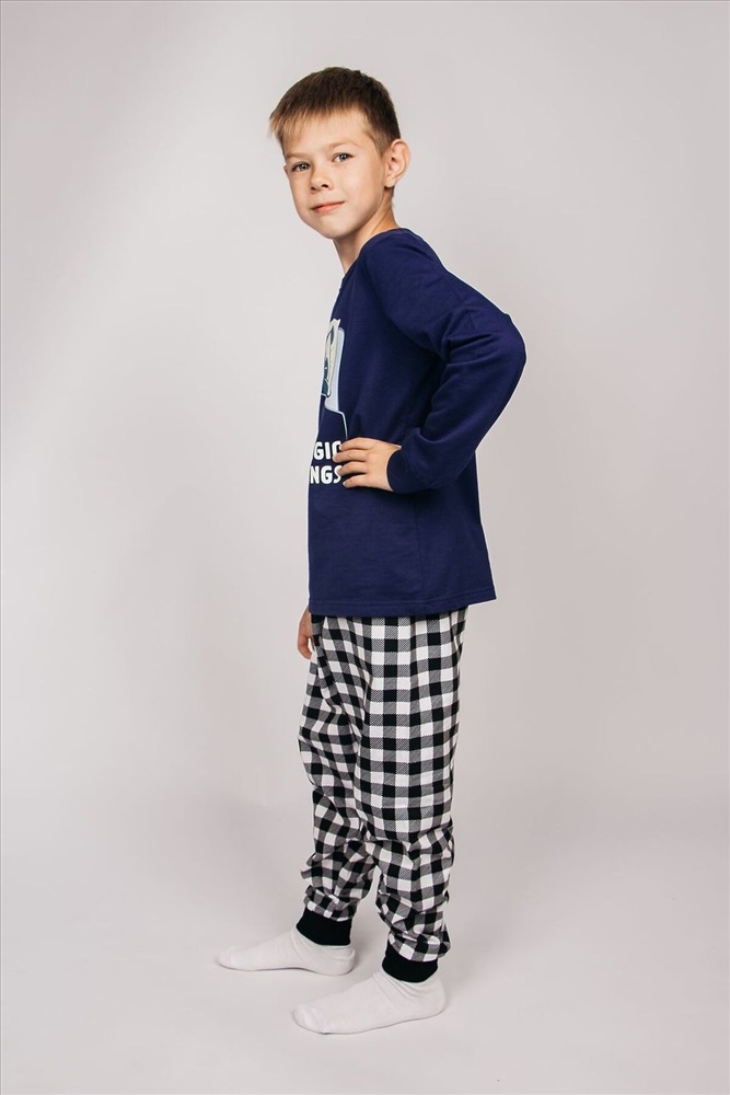 ID товара: 926429 Состав: 100% Хлопок Сезон: Демисезон Длина: Средняя Фасон: Свободный крой Рукав: длинные Основная ткань: Хлопок Стиль: Повседневный Вид ткани: Футер 2-х нитка с начесом Страна бренда: Россия Страна производства: Россия Пижама для мальчика, состоящая из джемпера и брюк. Джемпер прямого силуэта, с втачным длинным рукавом. Горловина круглая обработана воротником из рибаны. По низу рукавов манжеты из рибаны. Низ изделия обработан швом в подгибку. На полочке принт шелкография с флуоресцентной краской. Брюки прямого покроя, из набивного полотна. Пояс цельнокроеный, с эластичной тесьмой внутри. Пояс цельнокроеный, с эластичной тесьмой внутри. Комментарии к товару
