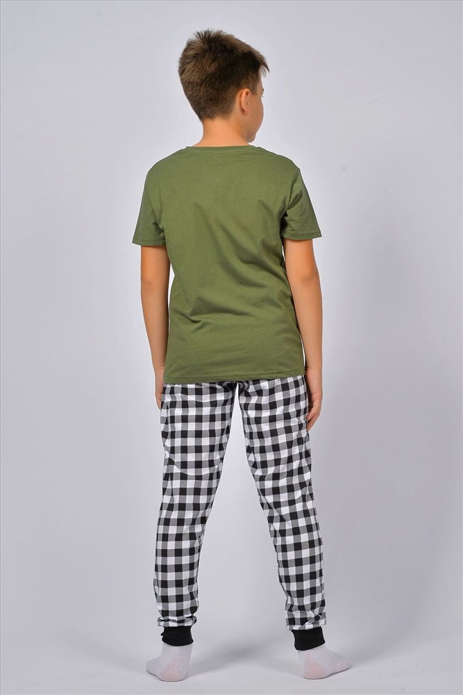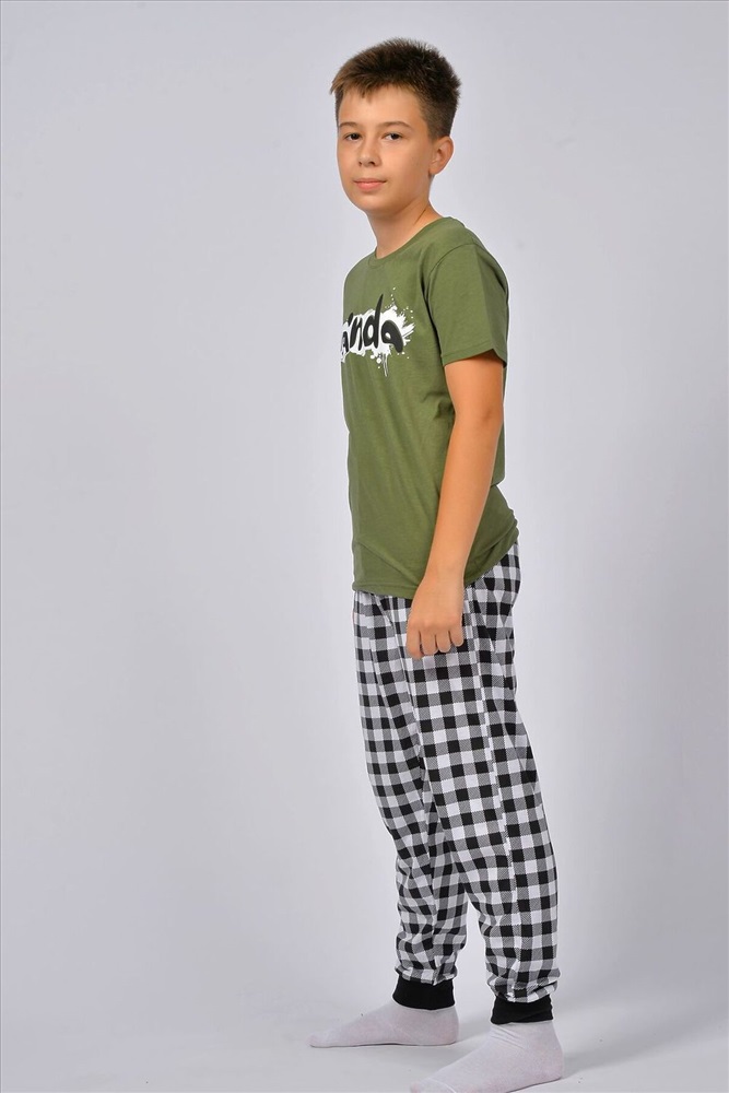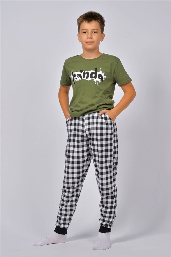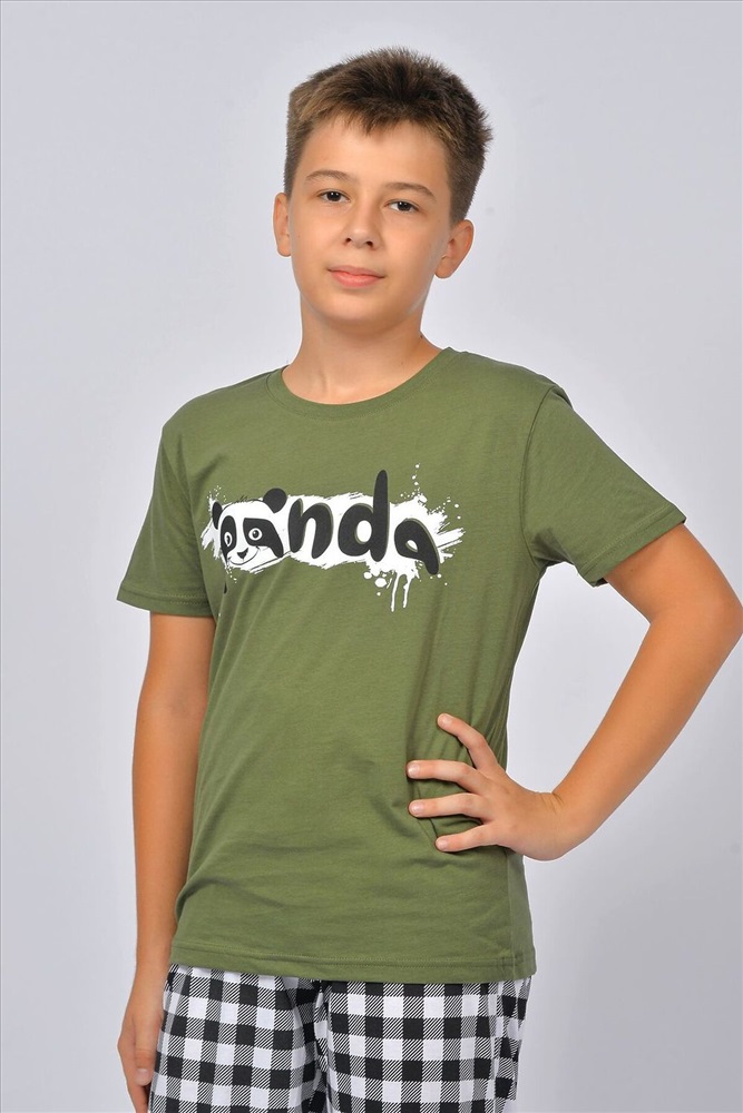 ID товара: 928464 Состав: 100% Хлопок Сезон: Весна/Лето Длина: Средняя Фасон: Прямой Рукав: короткие Основная ткань: Хлопок Стиль: Повседневный Вид ткани: Кулирка Страна бренда: Россия Страна производства: Россия Пижама для мальчика, состоящая из футболки и брюк. Футболка прямого силуэта с втачным коротким рукавом. Горловина круглая, обработана воротником из рибаны. Горловина спинки внутри обработана настрочной планкой из кулирки. Низ изделия и низ рукавов обработан швом вподгибку. На полочке принт, шелкография. Брюки прямого покроя, из набивного полотна. Отрезной пояс, из основного полотна с эластичной тесьмой внутри. На передней половинке брюк карманы с отрезным бочком. По низу изделия манжеты из рибаны. Комментарии к товару