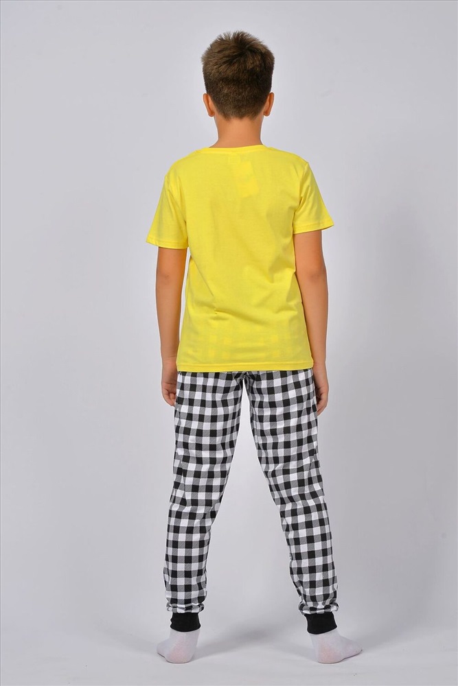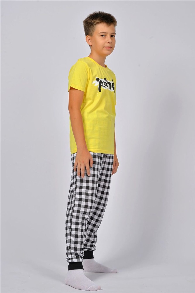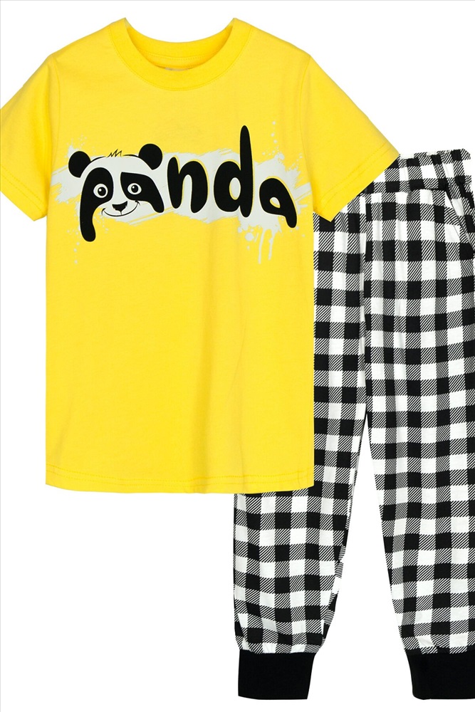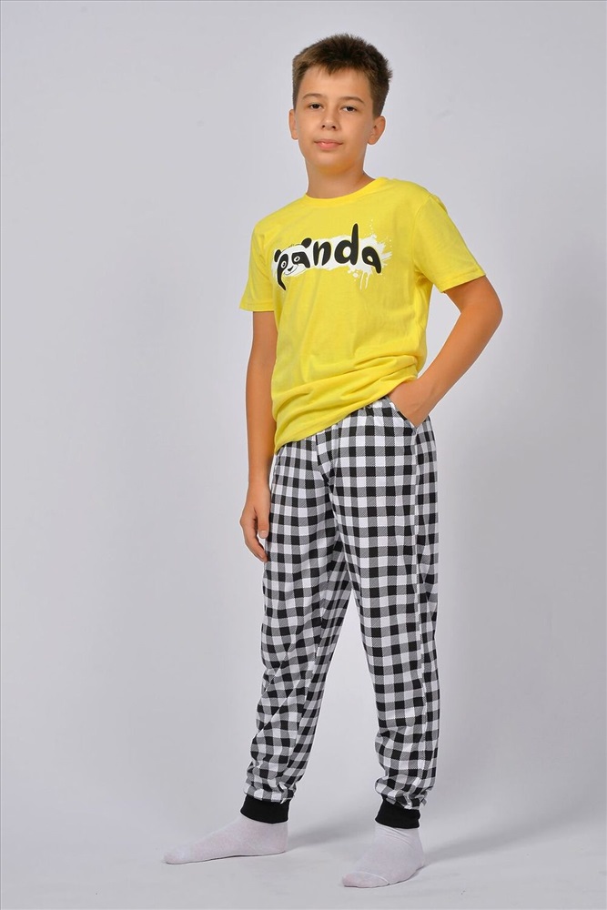 ID товара: 928465 Состав: 100% Хлопок Сезон: Весна/Лето Длина: Средняя Фасон: Прямой Рукав: короткие Основная ткань: Хлопок Стиль: Повседневный Вид ткани: Кулирка Страна бренда: Россия Страна производства: Россия Пижама для мальчика, состоящая из футболки и брюк. Футболка прямого силуэта с втачным коротким рукавом. Горловина круглая, обработана воротником из рибаны. Горловина спинки внутри обработана настрочной планкой из кулирки. Низ изделия и низ рукавов обработан швом вподгибку. На полочке принт, шелкография. Брюки прямого покроя, из набивного полотна. Отрезной пояс, из основного полотна с эластичной тесьмой внутри. На передней половинке брюк карманы с отрезным бочком. По низу изделия манжеты из рибаны. Комментарии к товару