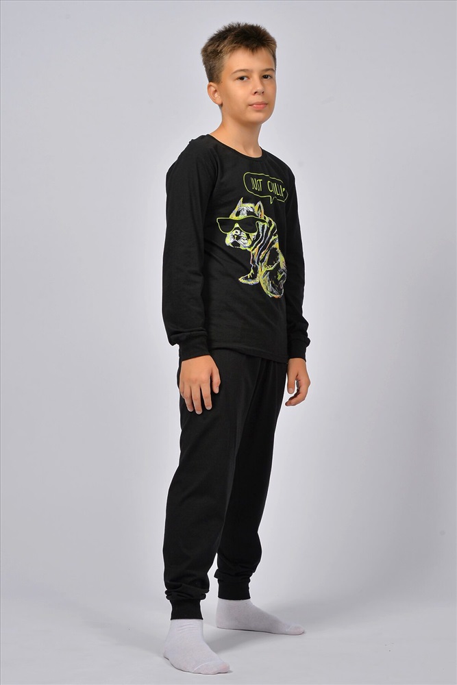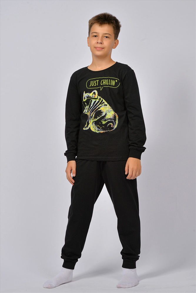 ID товара: 928456 Состав: 100% Хлопок Сезон: Весна/Лето Длина: Средняя Фасон: Прямой Рукав: длинные Основная ткань: Хлопок Стиль: Повседневный Вид ткани: Кулирка Страна бренда: Россия Страна производства: Россия Пижама для мальчика, состоящая из джемпера и брюк. Джемпер прямого силуэта, с втачным длинным рукавом. Горловина круглая обработана воротником из рибаны. По низу рукавов манжеты из рибаны. Низ изделия обработан швом в подгибку. На полочке принт шелкография. Брюки прямого покроя, из однотонного полотна и набивного полотна. Пояс цельнокроенный, с эластичной тесьмой внутри. По низу изделия манжеты из рибаны. Комментарии к товару