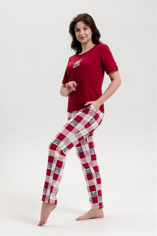 ID товара: 978981 Состав: 100% Хлопок Сезон: Демисезон Длина: Полная Фасон: Полуприлегающий Рукав: короткие Декоративные элементы: Принт Основная ткань: Хлопок Вид ткани: Кулирка Страна бренда: Россия Страна производства: Россия Хлопковая пижама для дома и сна - мягкий и удобный костюм из майки с брюками Российского производства с яркими и прикольными принтами, рисунками. Натуральный хлопок позволяет коже дышать, поэтому в ночной пижамке комфортно заниматься бытом, спать и встречаться с близкими на домашних вечерах. Пижамный оверсайз костюм двойка из хлопка отлично подойдёт девочкам, подросткам, девушкам, женщинам и бабушкам, за счёт большой размерной сетки. Это идеальный комплект для подарка своим любимым: жене, дочери, сестре, девушке, маме, на любой праздник - 8 марта, 14 февраля, Новый Год или День рождения! Такой летний комплект с майкой подойдёт и на пляж, и на прогулки, потому что кожа легко дышит через хлопковый материал. Среди покупателей часто встречаются беременные женщины, собирающиеся в роддом, кормящие и будущие мамы, потому что хлопковая пижама - это забота о себе и своём комфорте! Комментарии к товару