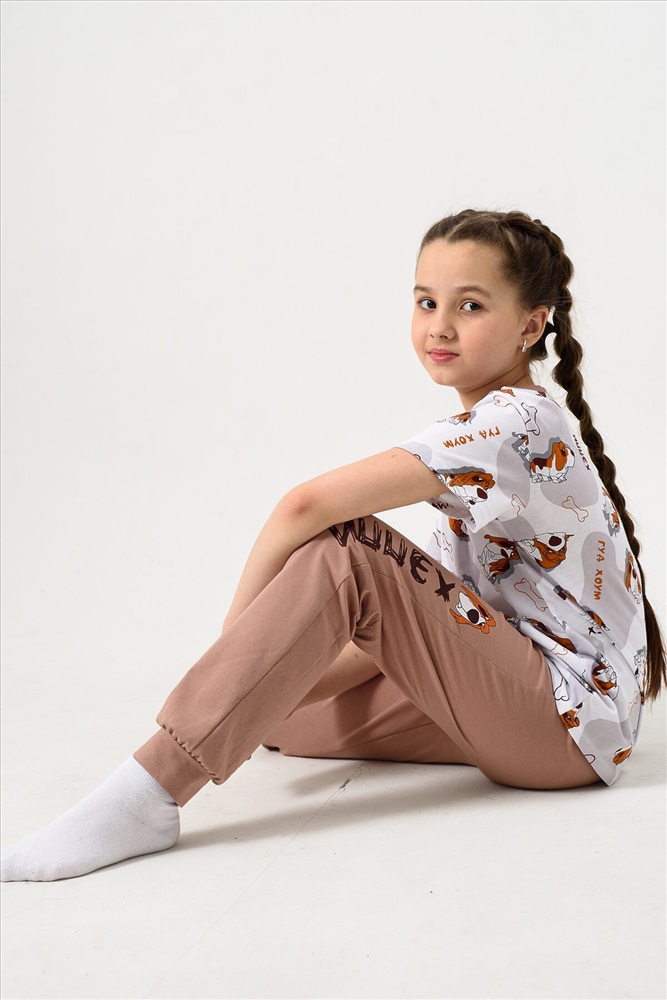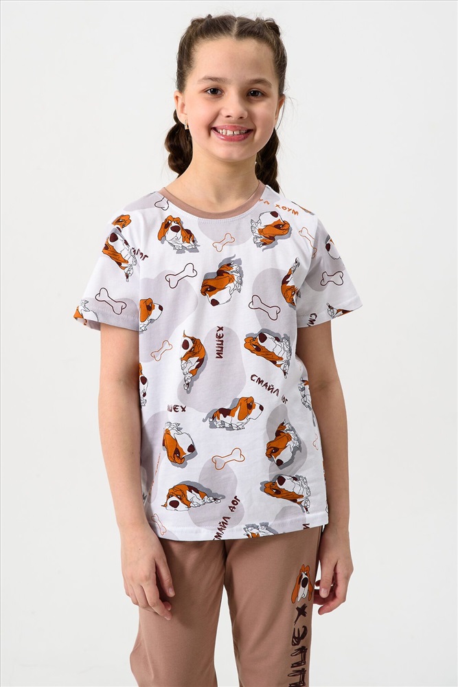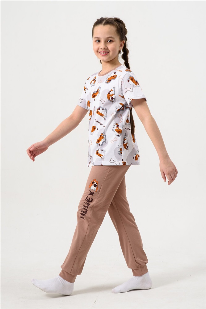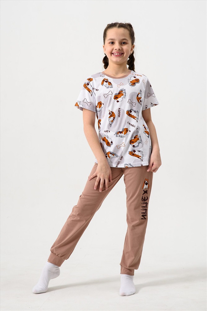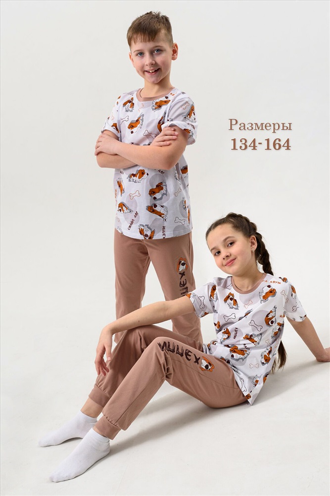 Пижама для мальчика детская, состоящая из футболки - набивное полотно и брюк с манжетой. Пижамка согревает, даже если ребенок ворочается и раскрывается во сне, а также создает ощущение уюта, ребенок спит глубже и реже просыпается. Также стильная пижама печатью собачка для подростков создает хорошее настроение. Можно носить как домашний костюм или использовать как летнюю пижаму, для дома или в садике. Пижамный костюм без карманов для полного комфорта во сне и застежек, свободного полуприлегающего силуэта, для комфортного сна ребенка. Пижамка с удобной посадкой и нетугой резинкой. Яркий и модный молодежный пижамный стиль для детей и подростков, пижама для мальчика подростка.