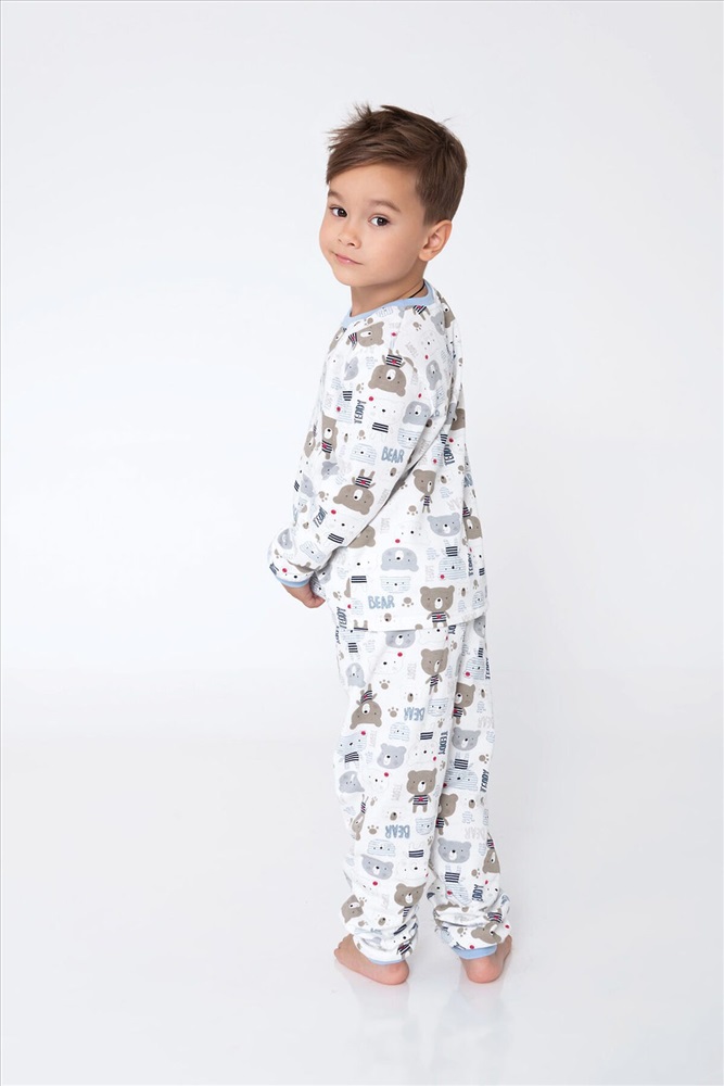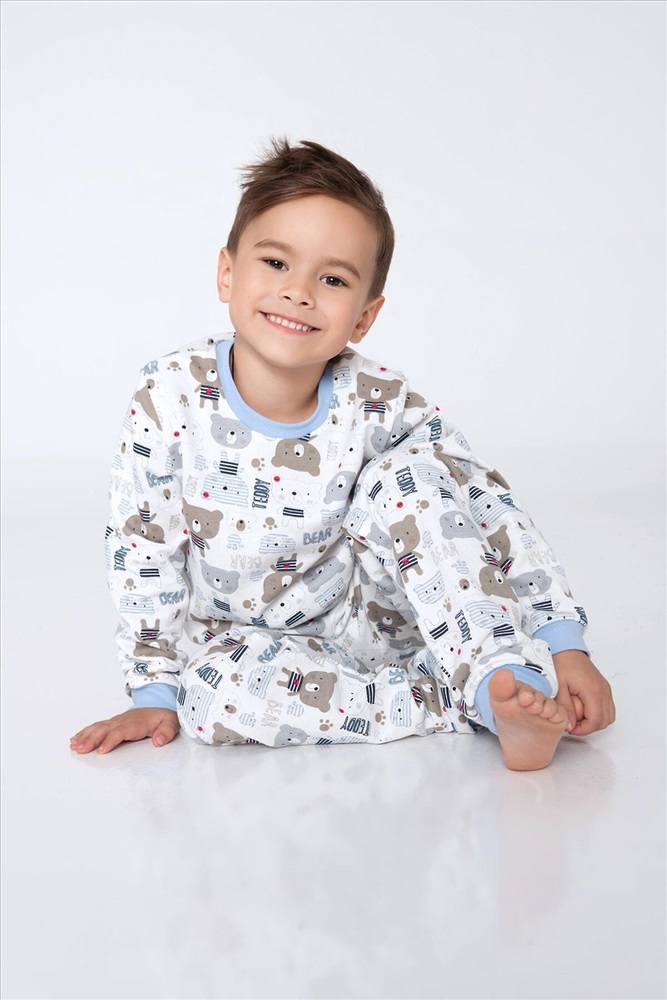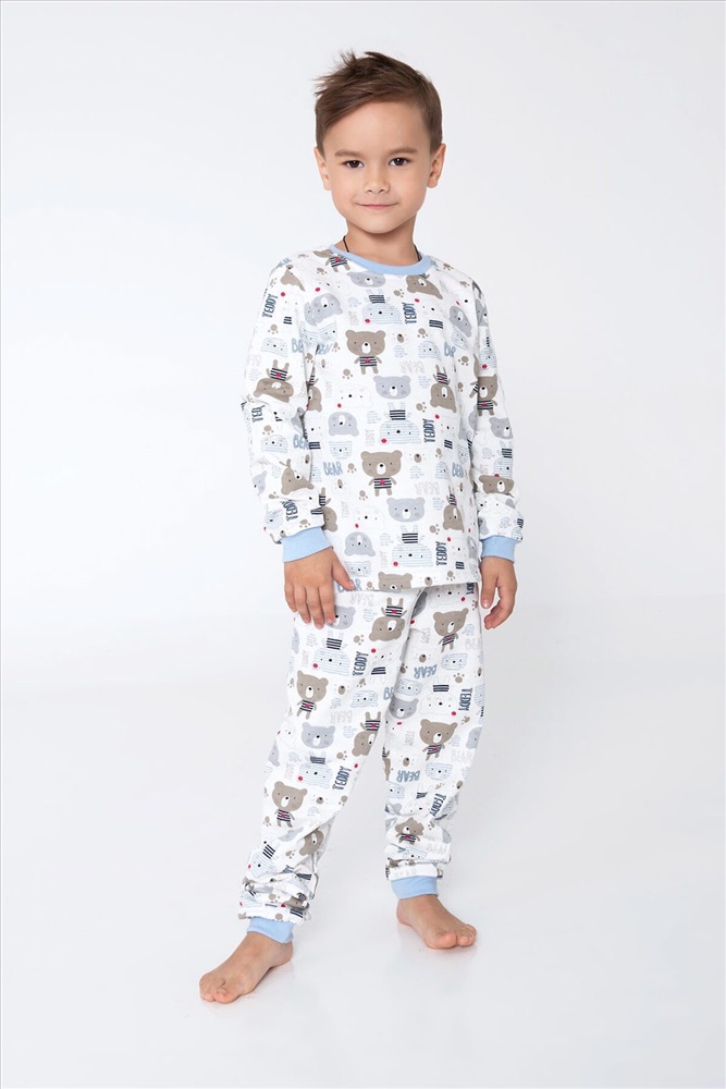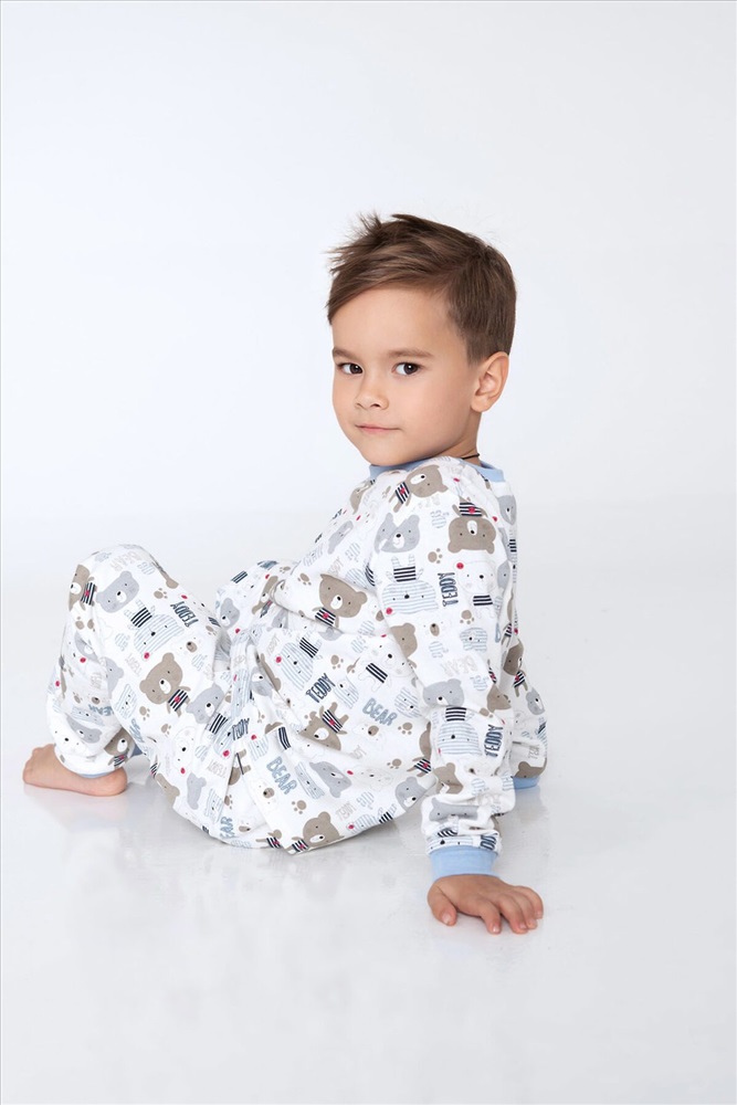 ID товара: 951177 Состав: 100% Хлопок Сезон: Демисезон Длина: Средняя Фасон: Прямой Рукав: длинные Основная ткань: Хлопок Стиль: Повседневный Вид ткани: Футер 2-х нитка с начесом Страна бренда: Россия Страна производства: Россия Детская пижама для мальчиков из 100% хлопка в светлых тонах с изображением тематических рисунков. Комментарии к товару