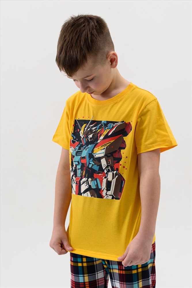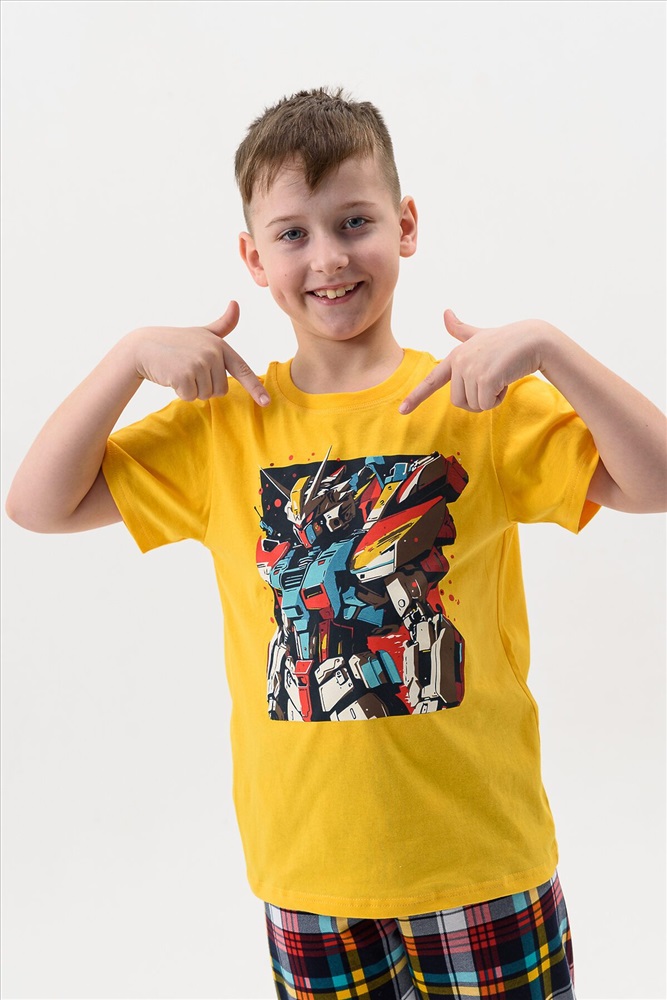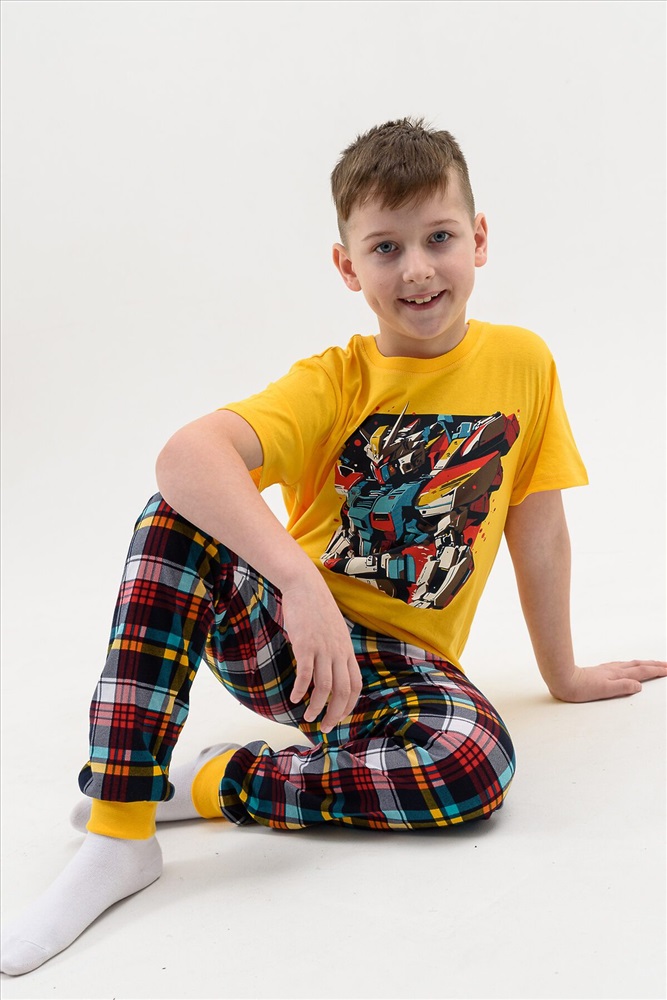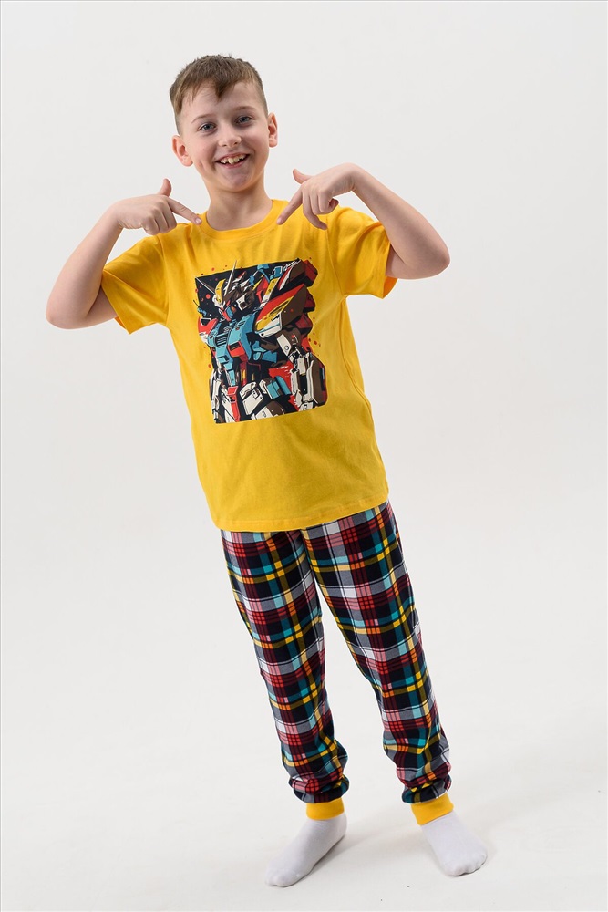 Страна производства: Россия Пижама для мальчика детская, состоящая из футболки - набивное полотно и брюк с манжетой. Пижамка согревает, даже если ребенок ворочается и раскрывается во сне, а также создает ощущение уюта, ребенок спит глубже и реже просыпается. Также стильная пижама печатью робот для подростков создает хорошее настроение. Можно носить как домашний костюм или использовать как летнюю пижаму, для дома или в садике. Пижамный костюм без карманов и застежек для полного комфорта во сне, свободного силуэта, для комфортного сна ребенка. Пижамка с удобной посадкой и нетугой резинкой. Яркий и модный молодежный пижамный стиль для детей и подростков, пижама для мальчика подростка.
