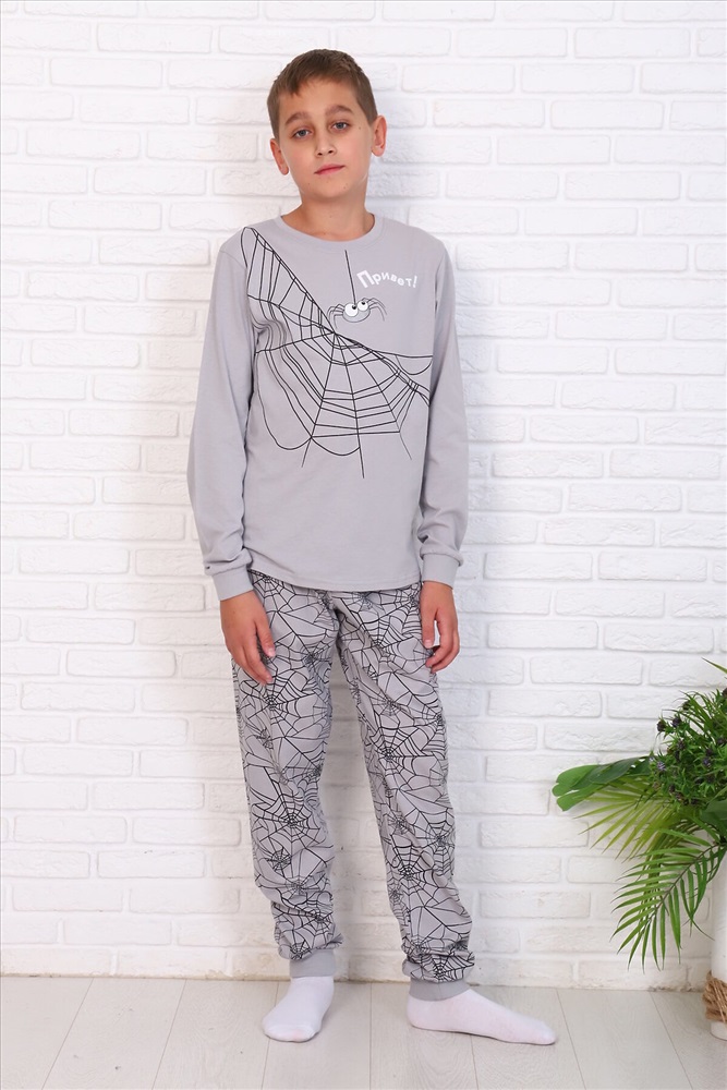 ID товара: 933963 Состав: 100% Хлопок Сезон: Весна/Лето Длина: Средняя Фасон: Прямой Рукав: длинные Основная ткань: Хлопок Вид ткани: Кулирка Страна бренда: Россия Страна производства: Россия Пижама для мальчиков дошкольного, младшего и старшего школьного возраста, из набивного и однотонного трикотажных полотен кулирная гладь и эластичного трикотажного полотна - рибана. Пижама состоит из свободных брюк и лонгслива. Лонгслив выполнен из однотонного полотна, брюки из набивного.Манжеты рукавов и брюк и обтачка горловины выполнены из рибаны. Лонгслив прямого силуэта, с втачным рукавом. Спереди и на спинке отсутствуют линии членения. Рукав длинный, одношовный, на манжете. Горловина с обтачкой. По шву втачивания обтачки в горловину проложена отделочная строчка. Низ лонгслива подогнут. Брюки прямые, на манжетах. Верхний срез брюк подогнут с резинкой 2см. На переднюю часть лонгслива нанесен печатный рисунок. Комментарии к товару