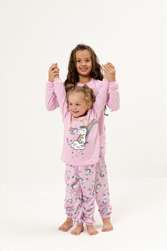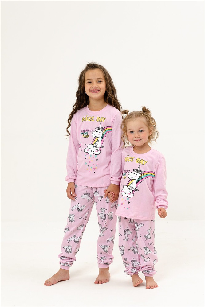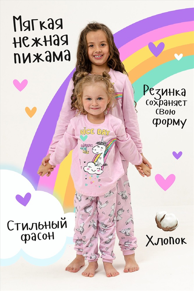 ID товара: 875892 Состав: 100% Хлопок Сезон: Демисезон Длина: Полная Фасон: Прямой Рукав: Длинные, короткие Декоративные элементы: Принт Основная ткань: Кулирка Страна бренда: Россия Страна производства: Россия Детская пижама для девочек из 100% хлопка в нежных тонах с милыми рисунками радужного пони. Комментарии к товару