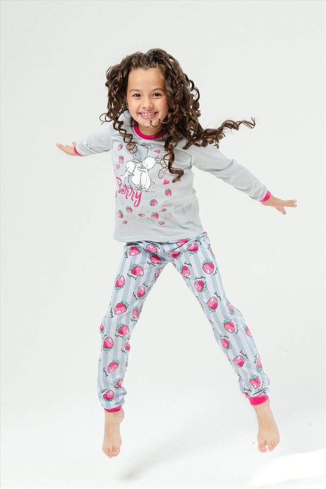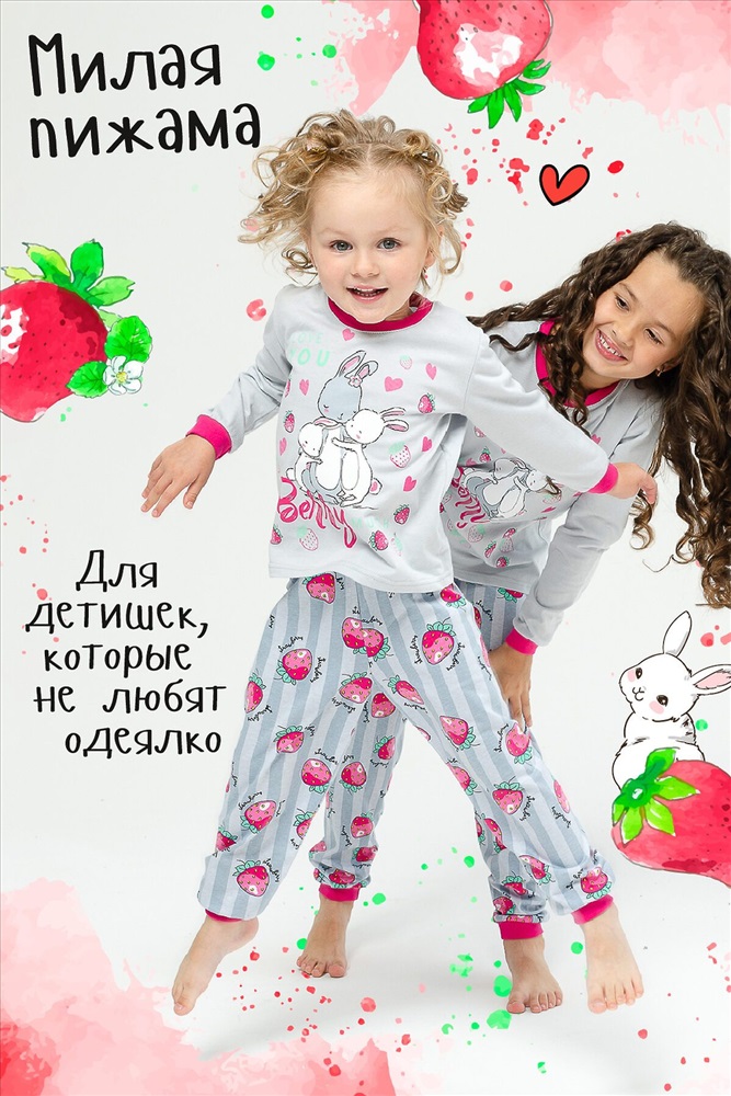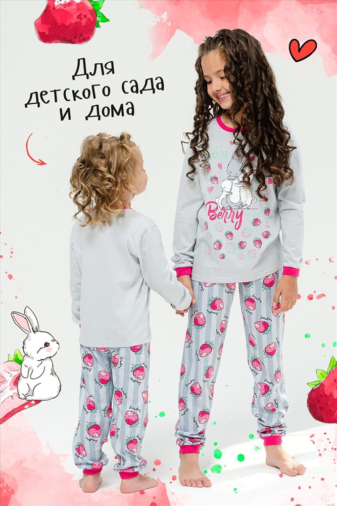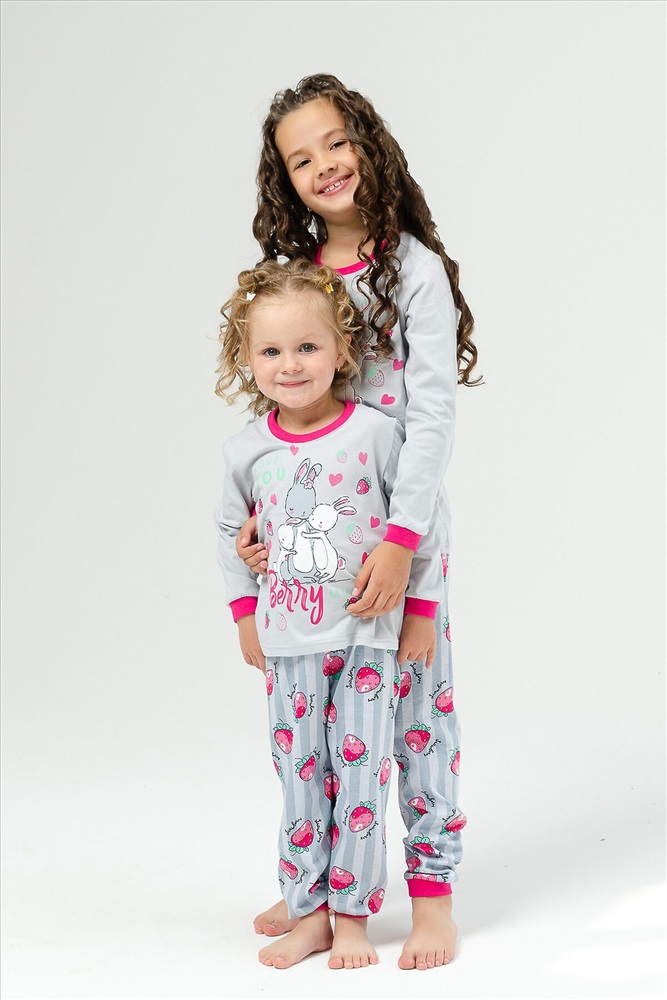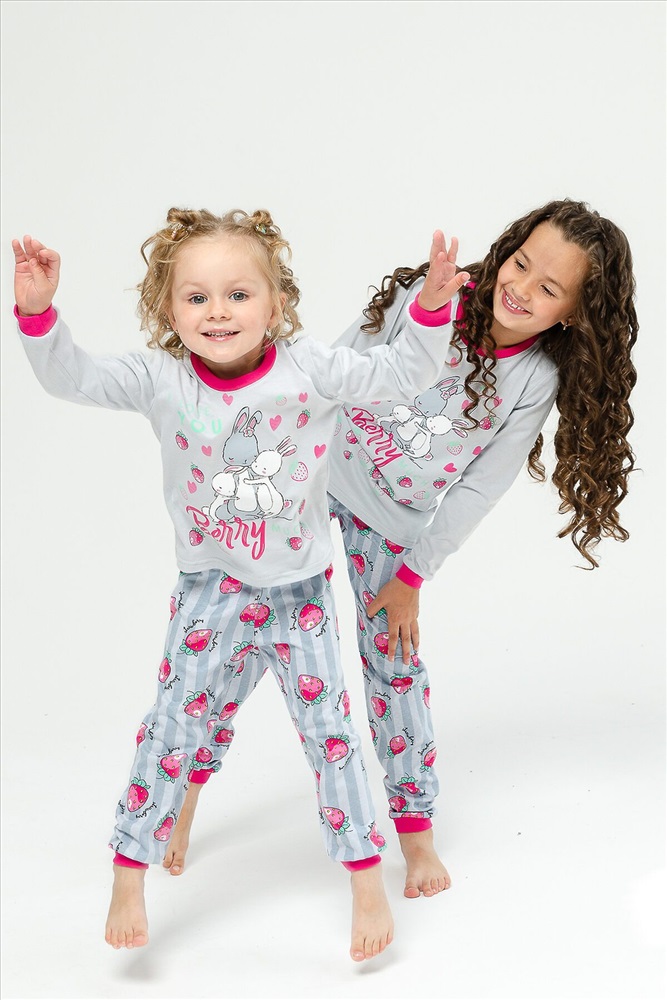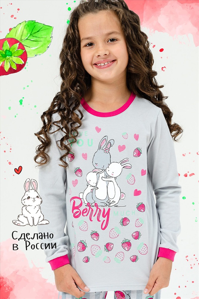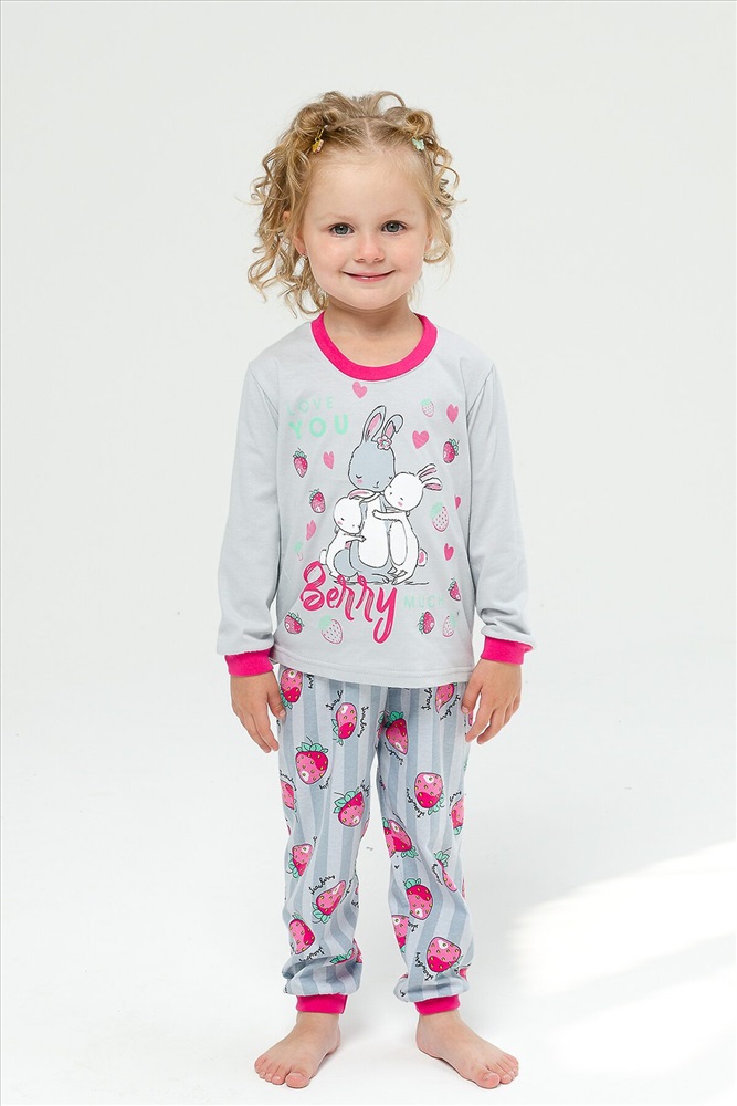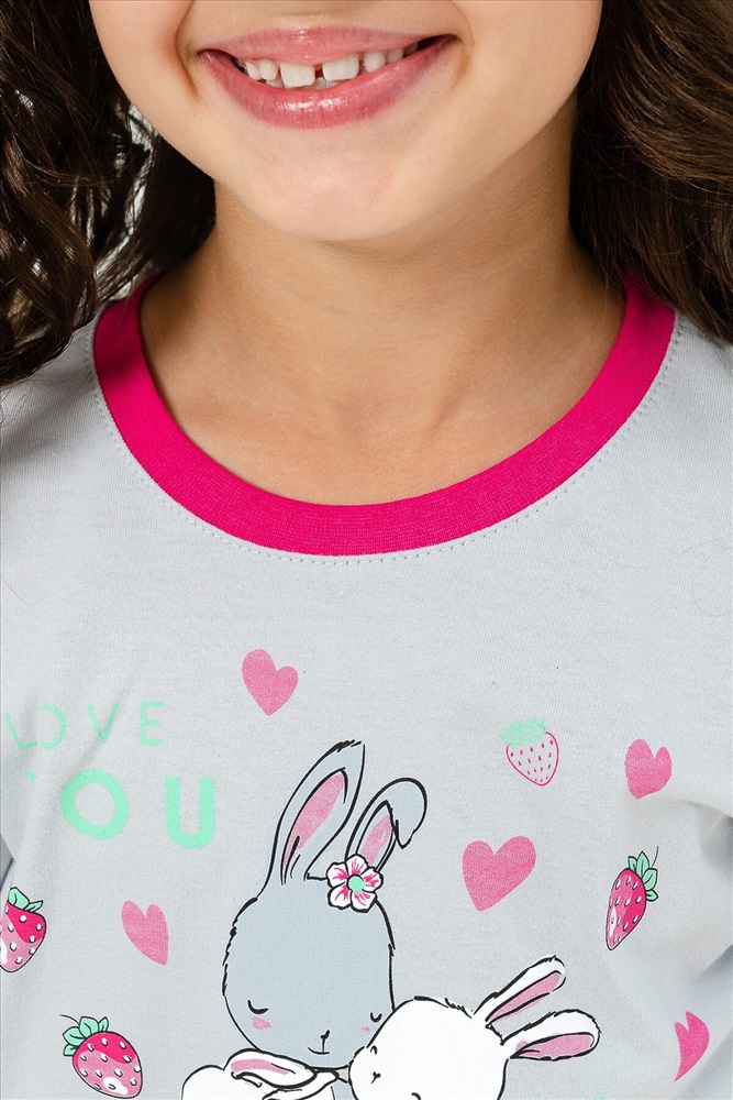 Страна производства: Россия Детская пижама для девочек из 100% хлопка в нежных тонах с милыми рисунками зайчиков на футболке