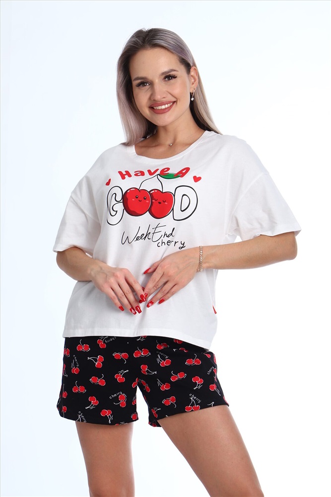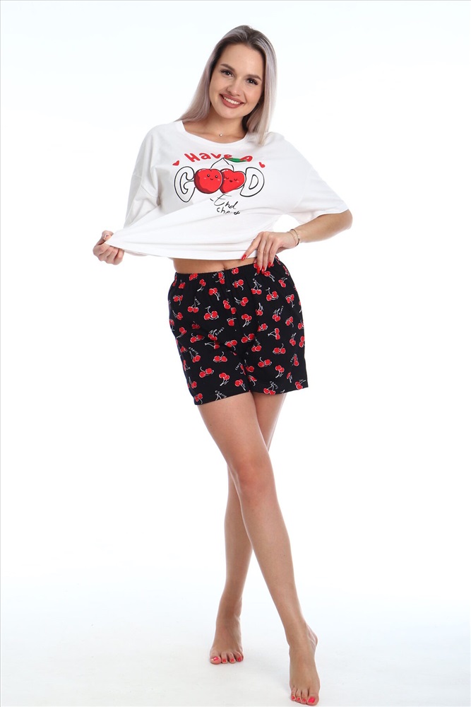 ID товара: 999518 Состав: Хлопок 100% Сезон: Весна/Лето Фасон: Свободный крой Рукав: Короткий Крой брючин: Прямой Рисунок: Фантазийный Вид ткани: Кулирка Страна бренда: Россия Страна производства: Россия Женский комплект Очарование- очень комфортная модель, состоящая из футболки свободного кроя, не стесняющей движений и шорт. Футболка дополнена принтом. Широкий размерный ряд позволит каждой покупательнице не остаться без покупки. Комментарии к товару