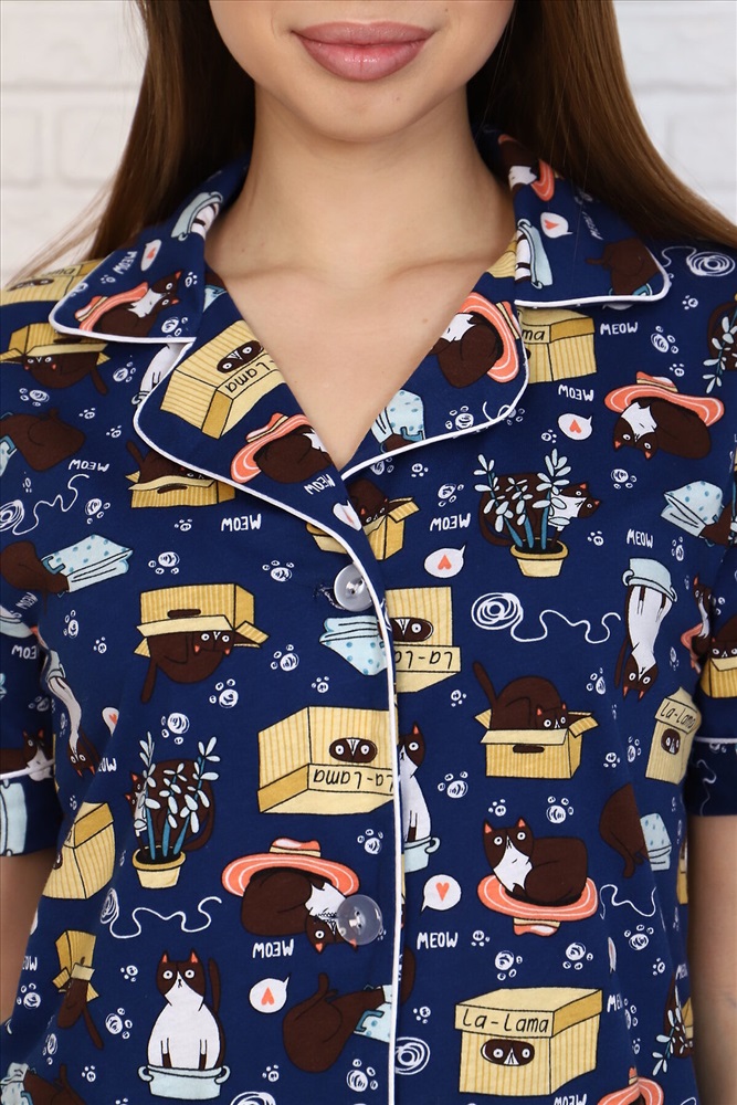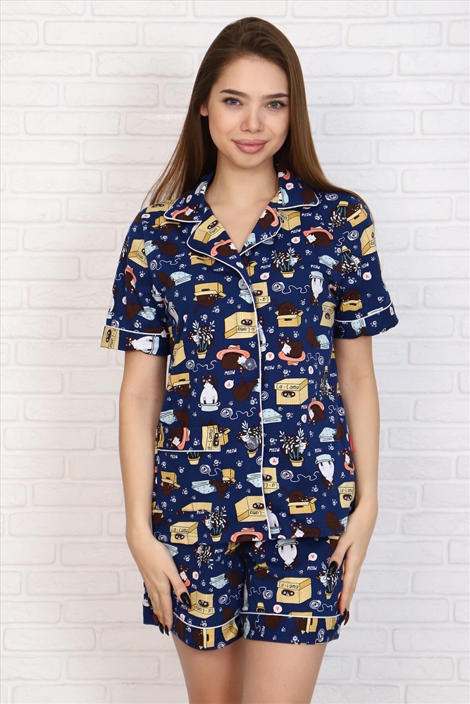 Страна производства: Россия Женская трикотажная пижама из 100% хлопка. Комплект состоит из рубашки на пуговицах с коротким рукавом и шорт. Мы прекрасно понимаем, что для женщин максимальное удобство сочетается с красивым дизайном одежды, поэтому наша пижама объединила в себе все лучшие качества. Мягкий и нежный хлопок будет ласкать вашу кожу, а стильный дизайн сделает вас настоящим центром внимания дома. Это идеальный комплект для отдыха после трудового дня. Приобрести такую пижаму значит инвестировать в собственный комфорт и уют.