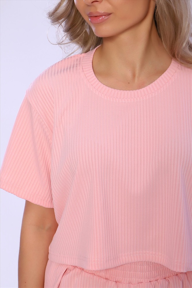 ID товара: 978268 Состав: 95% Полиэстер, 5% Лайкра Сезон: Демисезон Длина: Средняя Фасон: Свободный Рукав: короткие Основная ткань: Полиэстер Вид ткани: Лапша Страна бренда: Россия Страна производства: Россия Пижама состоит из футболки и шорт. Футболка свободная, укороченная с короткими рукавами. Шорты свободные с запахом по бокам. Комментарии к товару