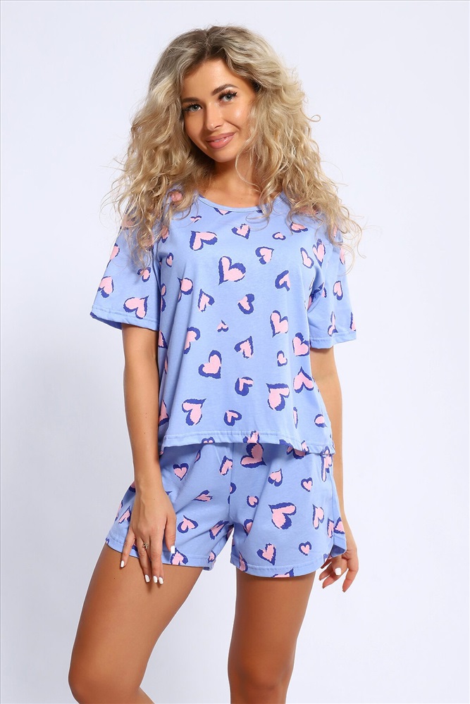 ID товара: 1023998 Состав: 100% Хлопок Сезон: Демисезон Длина: Средняя Фасон: Свободный Рукав: короткие Декоративные элементы: Принт Основная ткань: Хлопок Вид ткани: Кулирка Страна бренда: Россия Страна производства: Россия Пижама состоит из шорт и футболки. Шорты с фигурной линией нижних срезов. Футболка свободного кроя, укороченная с короткими рукавами. Комментарии к товару