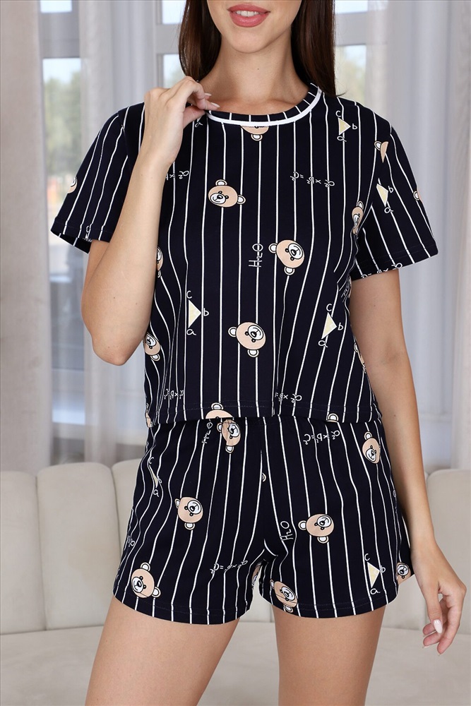Женская пижама вас точно не оставит равнодушными! Пижама с шортами имеет актуальный и модный принт, удобный в носке с дышащей тканью из 100% хлопка. Домашний комплект позволит вам чувствовать себя женственной и привлекательной. Шорты свободные с мягкой резинкой. Футболка свободного силуэта с кантом по горловине и коротким рукавом. Этот стильный домашний комплект подчеркнет очарование своей обладательницы. Пижама женская подойдет на подарок подруге, маме, сестре, жене, любимой. Пижама с брюками из этой коллекции - 38545