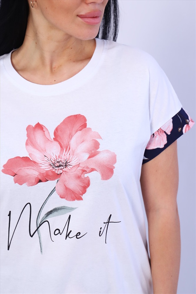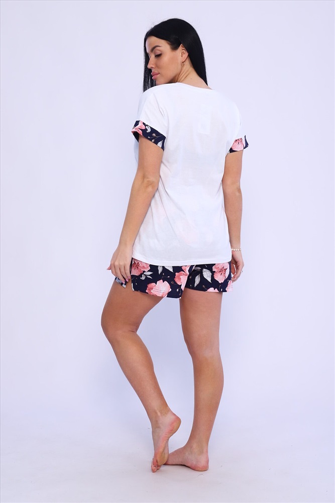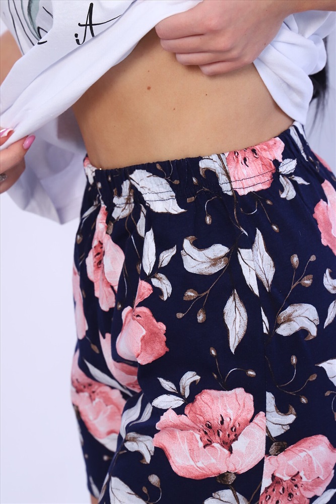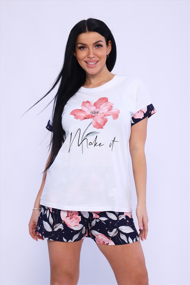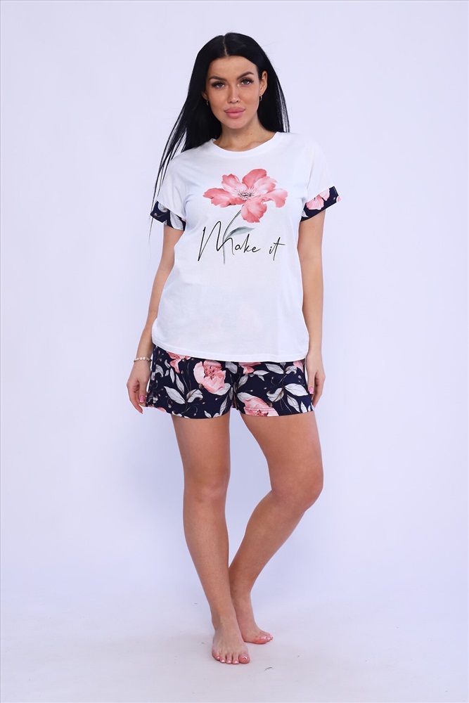 ID товара: 1000464 Состав: 100% Хлопок Сезон: Весна/Лето Фасон: Прямой Рукав: Короткий Крой брючин: Прямой Рисунок: растительный, цветочный Вид ткани: Кулирка Страна бренда: Россия Страна производства: Россия Пижама домашняя, состоит из футболки и шорт. Футболка свободной формы. Плечо удлиненное с отделочной манжетой. Горловина округлой формы с обтачкой. Перед украшает оригинальный принт. Шорты свободные прямые, длиной до середины бедра, с боковыми разрезами. Пояс на резинке. Комментарии к товару