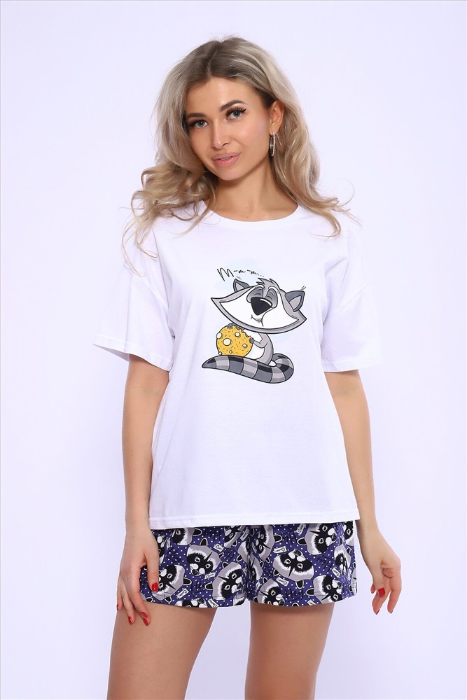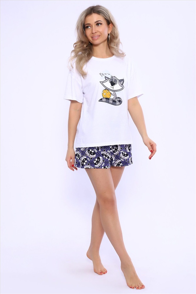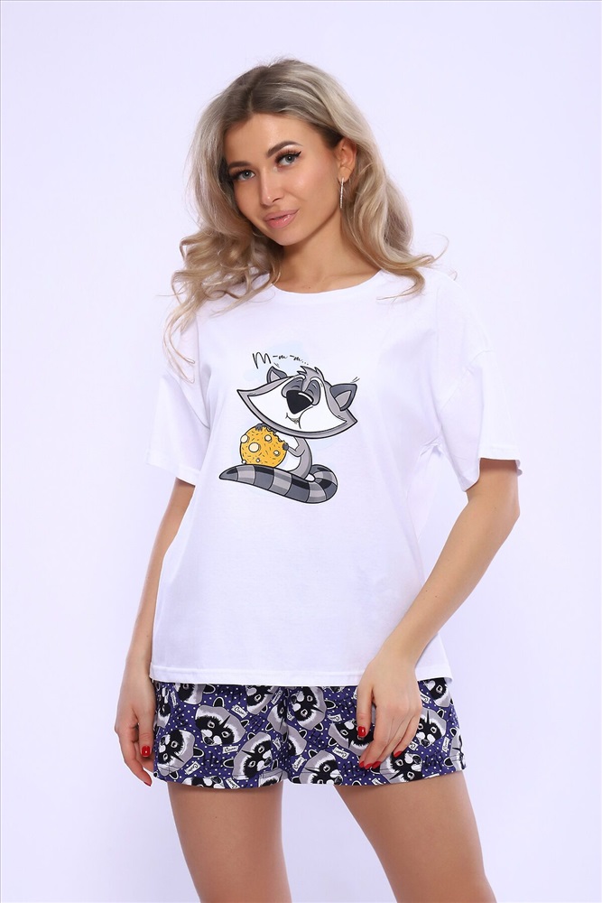 ID товара: 980744 Состав: 100% Хлопок Сезон: Весна/Лето Фасон: Прямой Рукав: Короткий Крой брючин: Прямой Рисунок: Фантазийный Вид ткани: Кулирка Страна бренда: Россия Страна производства: Россия Женский домашний костюм - пижама, состоящий из футболки и шорт Еноты из трикотажного полотна 100%-го хлопка. Приятный дышащий материал идеален для изготовления домашней одежды. Футболка свободного кроя, с круглой горловиной и втачным спущенным коротким рукавом, в которой будет одинаково приятно спать и заниматься домашними делами. Оригинальный принт обязательно поднимет настроение. Шорты прямого силуэта свободного кроя. Пижамка не изменит свой внешний вид после стирки при соблюдении рекомендаций по уходу и будет долго вас радовать. Отличный подарок для всех девушек и женщин на 14 февраля, 8 марта и другие праздники! Расцветка выбирается по футболке. Параметры модели 165см, 90-65-98. На модели 46 размер. Комментарии к товару