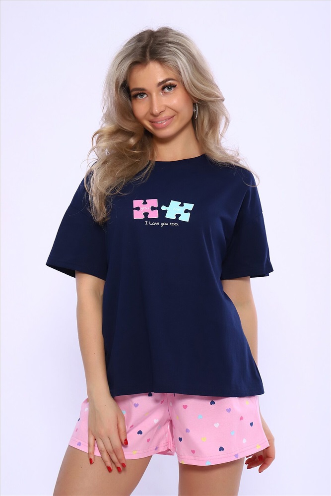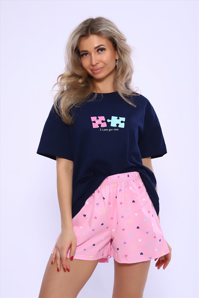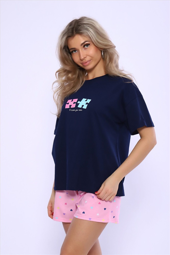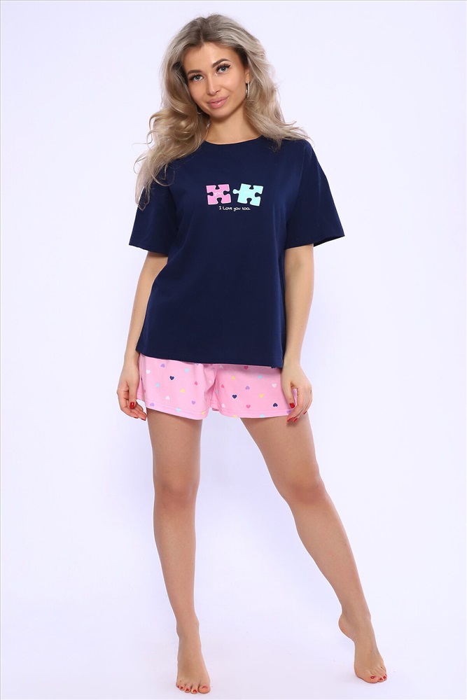 ID товара: 980742 Состав: 100% Хлопок Сезон: Весна/Лето Фасон: Прямой Рукав: Короткий Крой брючин: Прямой Рисунок: Фантазийный Вид ткани: Кулирка Страна бренда: Россия Страна производства: Россия Женский домашний костюм - пижама, состоящий из футболки и шорт Сердечки из трикотажного полотна 100%-го хлопка. Приятный дышащий материал идеален для изготовления домашней одежды. Футболка свободного кроя, с круглой горловиной и втачным спущенным коротким рукавом, в которой будет одинаково приятно спать и заниматься домашними делами. Оригинальный принт обязательно поднимет настроение. Шорты прямого силуэта свободного кроя. Пижамка не изменит свой внешний вид после стирки при соблюдении рекомендаций по уходу и будет долго вас радовать. Отличный подарок для всех девушек и женщин на 14 февраля, 8 марта и другие праздники! Расцветка выбирается по футболке. Параметры модели 165см, 90-65-98. На модели 46 размер. Комментарии к товару