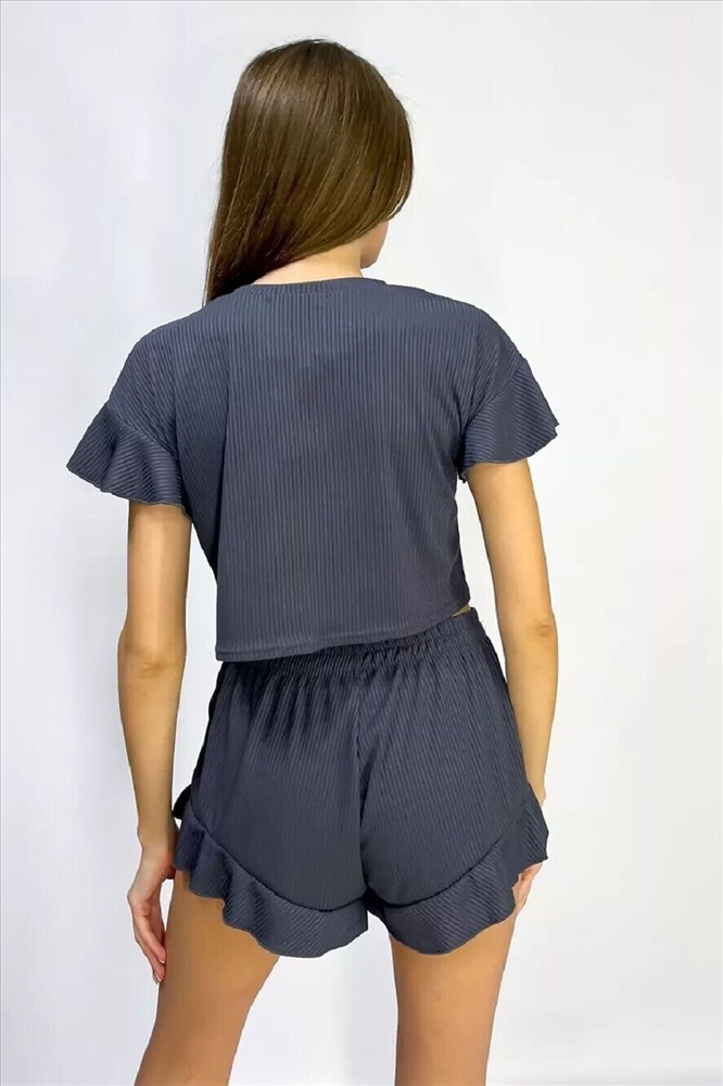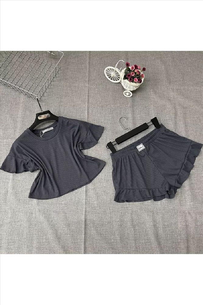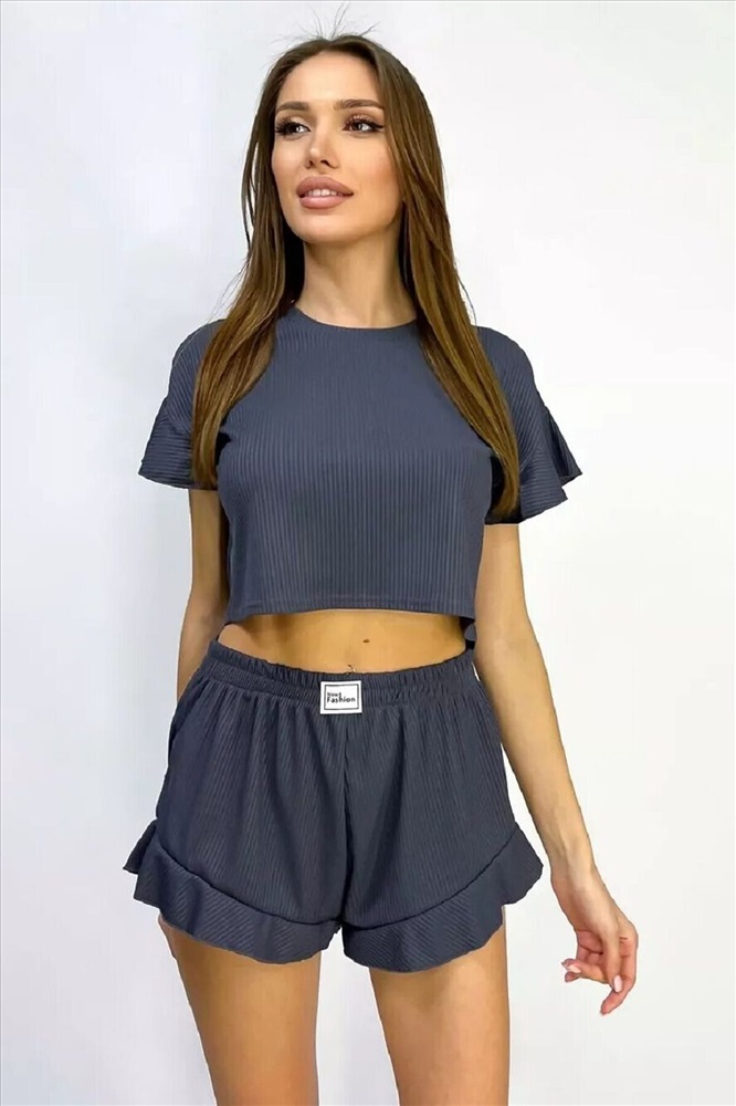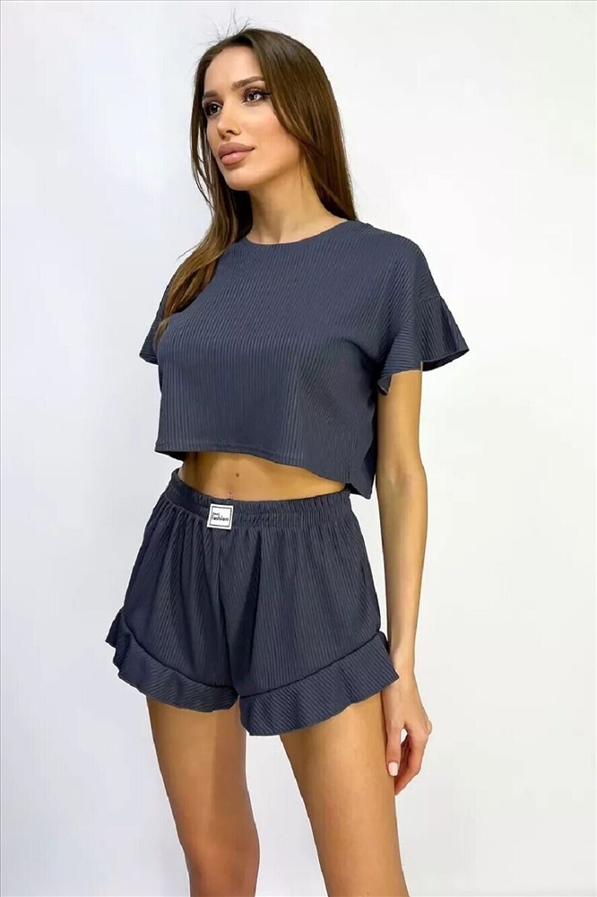 Модная пижама с шортами и топом с коротким рукавом это идеальный выбор качественной домашней одежды! Благодаря мягкой трикотажной ткани в рубчик лапша и свободному крою оверсайз комплект не будет стеснять движения, не линяет, не теряет форму после стирки и не скатывается. Одежда будет комфортной не только во время сна также подойдет для повседневной носки дома в независимости от времени года.