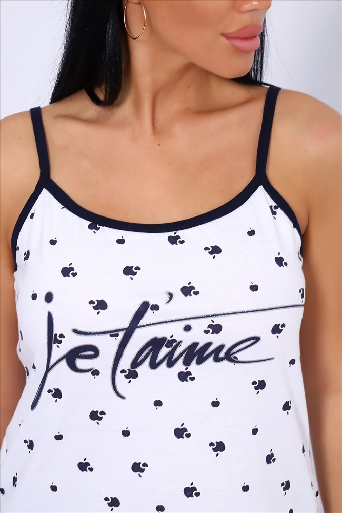 Страна производства: Россия Пижама женская с топом и шортами. Данная модель выполнена из трикотажного полотна кулирка . На полочке присутствует принт. Отличная модель для сна и домашнего отдыха.