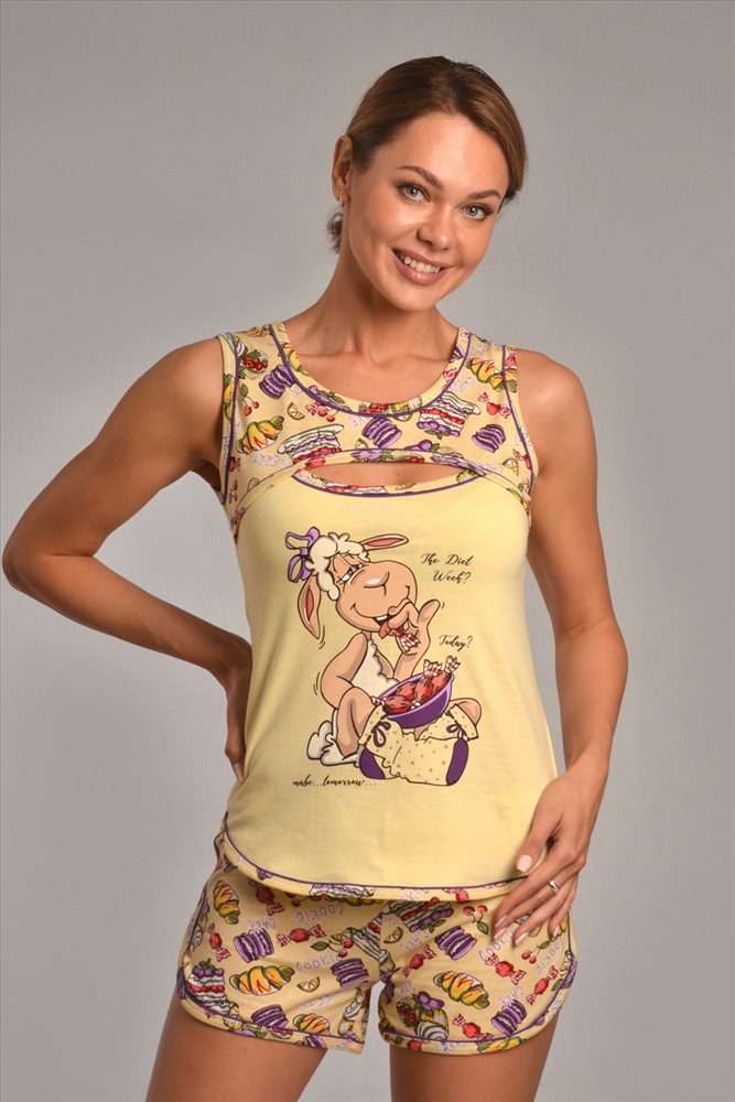 Состав: 100 % хлопок Модель: Пижама с шортами ДИЕТА Тип товара: пижама с шортами Материал: кулирка | кулирка Бренд: Ивановская Трикотажная компания Длина: короткий Карман: без карманов Назначение: для дома НДС: 5% Особенности: на резинке Отделка: с печатью Посадка: средняя посадка Рисунок: фуд-принт | зверюшки Рукав: без рукава Сезонность: лето | осень | весна | зима Силуэт: полуприлегающий Стиль: домашний Воротник: без воротника Застежка: без застежки Пижама женская из 100% хлопка: майка, шорты. Классический вариант пижамы, позволяет чувствовать себя комфортно, расслабленно и спокойно во время сна и во время нахождения дома. Костюм с шортами подходит для девушек и женщин любых возрастов в любое время года. Таблица размеров и весаМайка