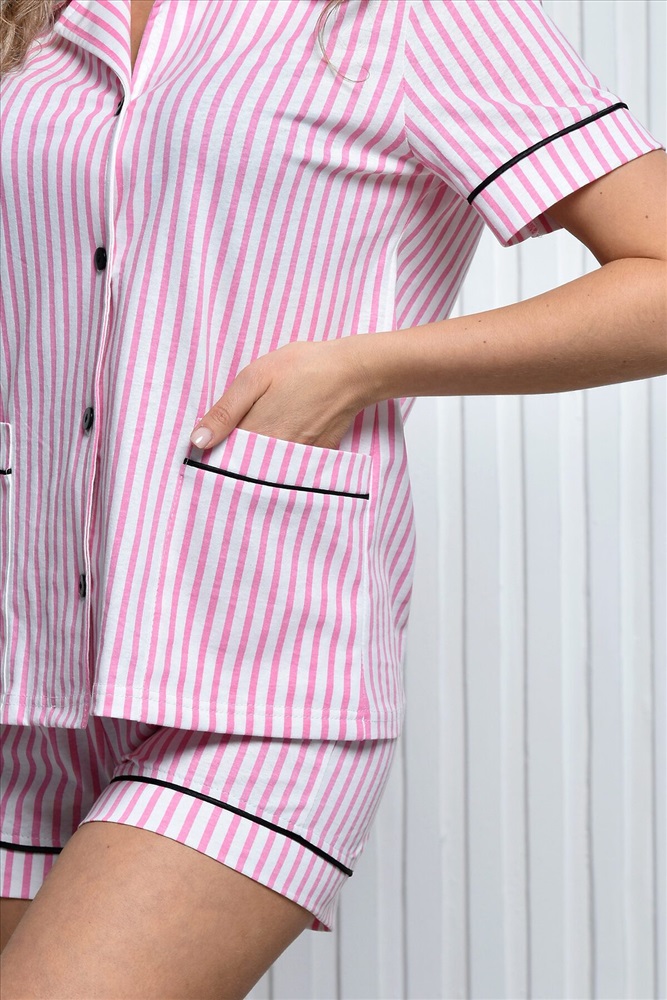 ID товара: 995563 Состав: 100% Хлопок Сезон: Весна/Лето Фасон: Прямой Рукав: Короткие Вид застежки: Пуговицы Крой брючин: Прямой Рисунок: Полоска Тип карманов: Накладные Вид ткани: Кулирка Страна бренда: Россия Страна производства: Россия Домашняя пижама, состоящая из комплекта рубашки с шортами отличный вариант для дома! Изготовлена из ткани кулирка премиум качества. Такой костюм - отличный вариант как для сна, так и для повседневной носки. Модель состоит из рубашки на пуговицах с коротким рукавом с манжетой и отложным воротником и шорт прямого кроя на эластичной резинке с высокой посадкой, которые обеспечивают свободу движений. Для сохранения всей глубины цвета даже после многочисленных стирок, ухаживайте за изделием должным образом. Рекомендуем стирать на бережном режиме, при температуре не выше 40 градусов. Комментарии к товару