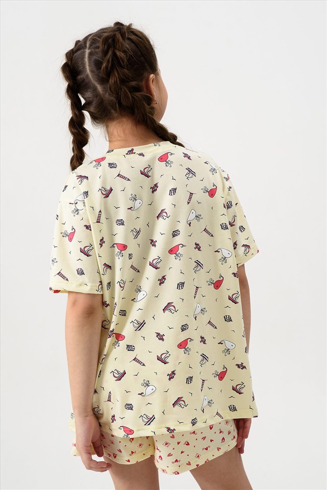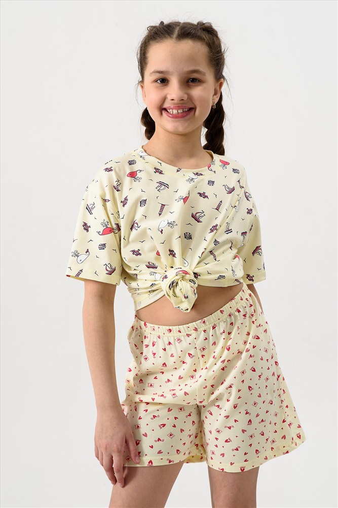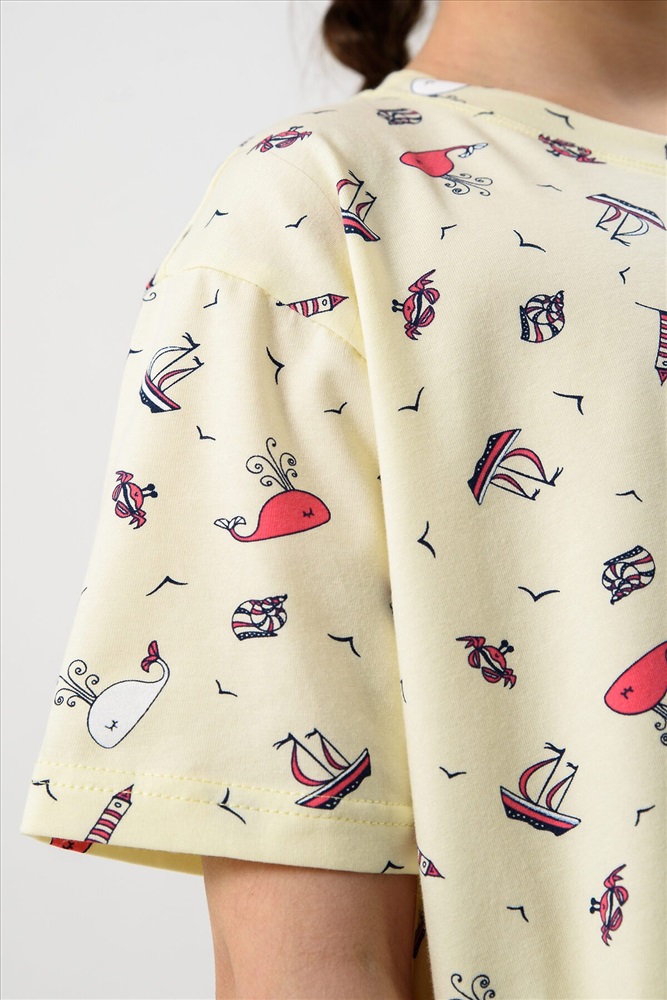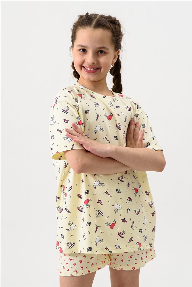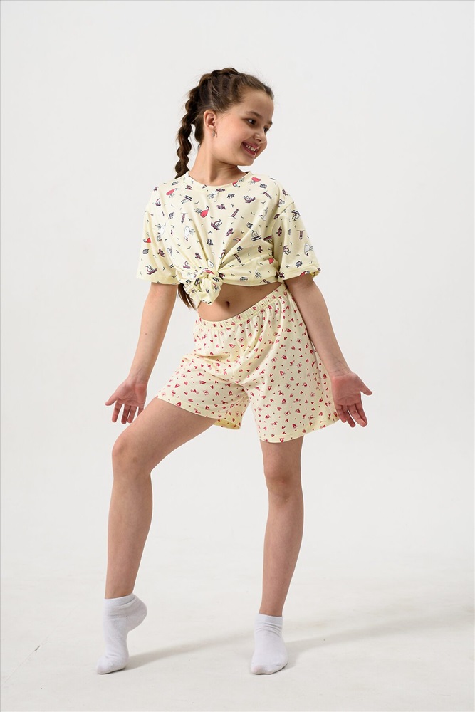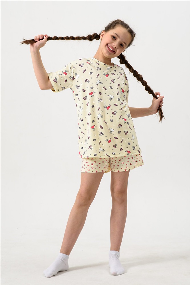 ID товара: 981413 Состав: 92% Хлопок, 8% Лайкра Сезон: Демисезон Длина: Средняя Фасон: Свободный Рукав: короткие Декоративные элементы: Принт Основная ткань: Хлопок Вид ткани: Кулирка с лайкрой Страна бренда: Россия Страна производства: Россия Пижама для девочки детская с оверсайз футболкой и шортами, выполнена из натуральной мягкой, приятной к телу трикотажной ткани средней плотности. Свободные шорты с удобной посадкой и нетугой резинкой без карманов не сковывают движений ребенка. Костюм для девочки с шортами можно носить дома или в садике, как пижаму или костюм. Яркие расцветки пижамы подойдут и для малышей и для подростков, а свободный крой и отсутствие застежек идеально для комфортного сна ребенка. Комментарии к товару