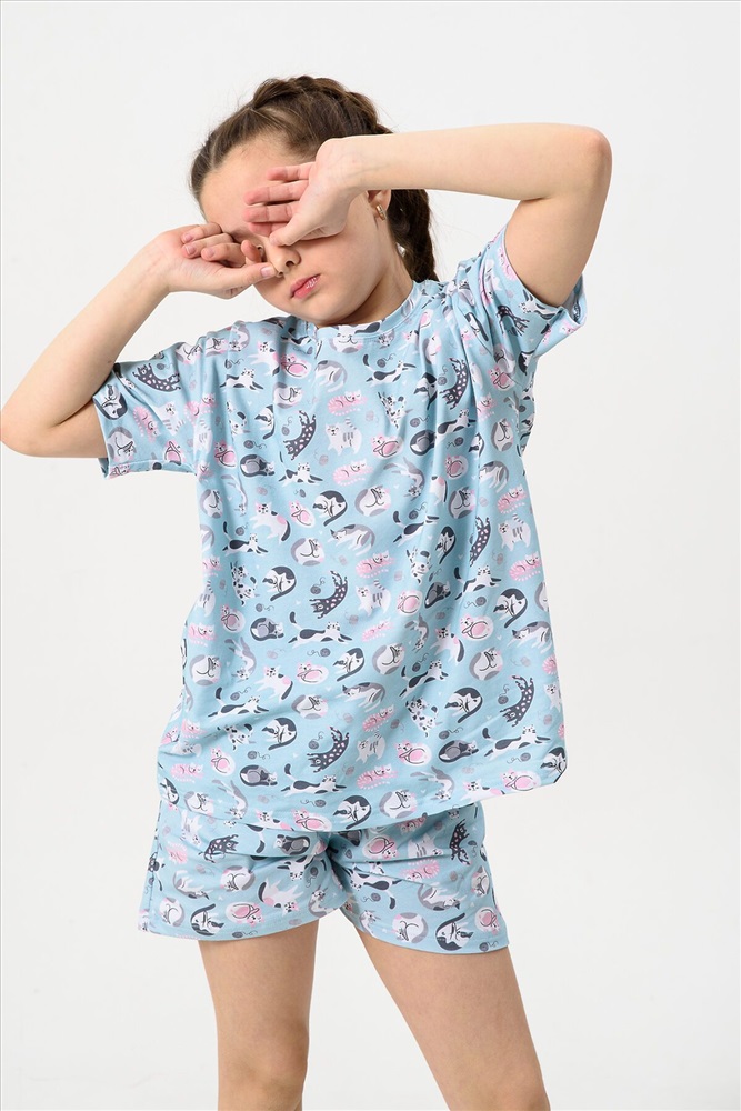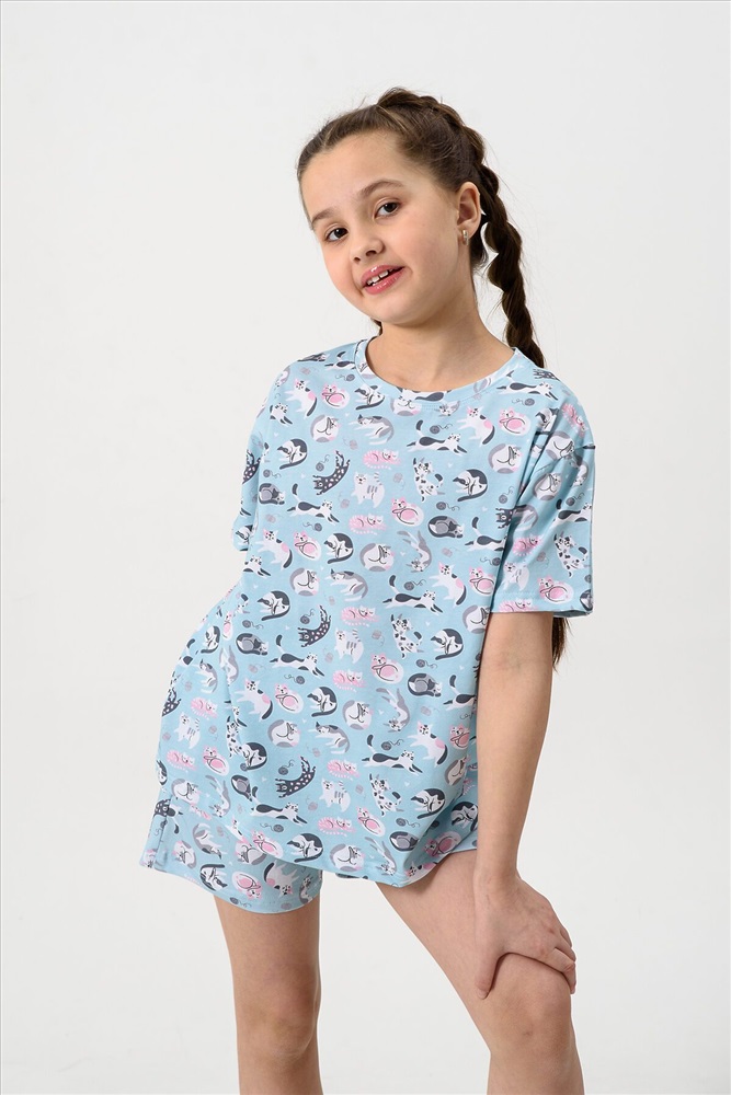 ID товара: 981415 Состав: 92% Хлопок, 8% Лайкра Сезон: Демисезон Длина: Средняя Фасон: Свободный Рукав: короткие Декоративные элементы: Принт Основная ткань: Хлопок Вид ткани: Кулирка с лайкрой Страна бренда: Россия Страна производства: Россия Пижама для девочки детская с оверсайз футболкой и шортами, выполнена из натуральной мягкой, приятной к телу трикотажной ткани средней плотности. Свободные шорты с удобной посадкой и нетугой резинкой без карманов не сковывают движений ребенка. Костюм для девочки с шортами можно носить дома или в садике, как пижаму или костюм. Яркие расцветки пижамы подойдут и для малышей и для подростков, а свободный крой и отсутствие застежек идеально для комфортного сна ребенка. Комментарии к товару