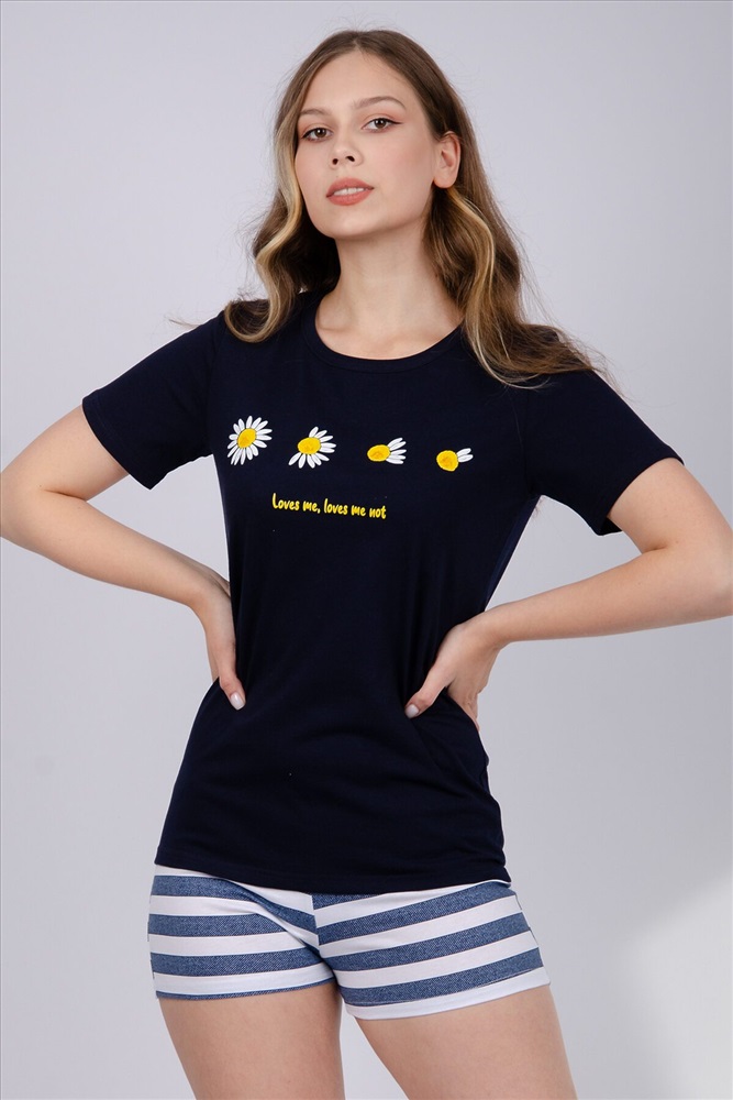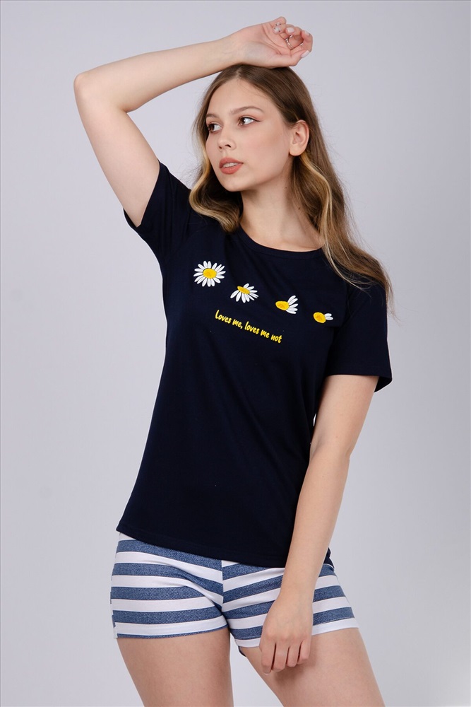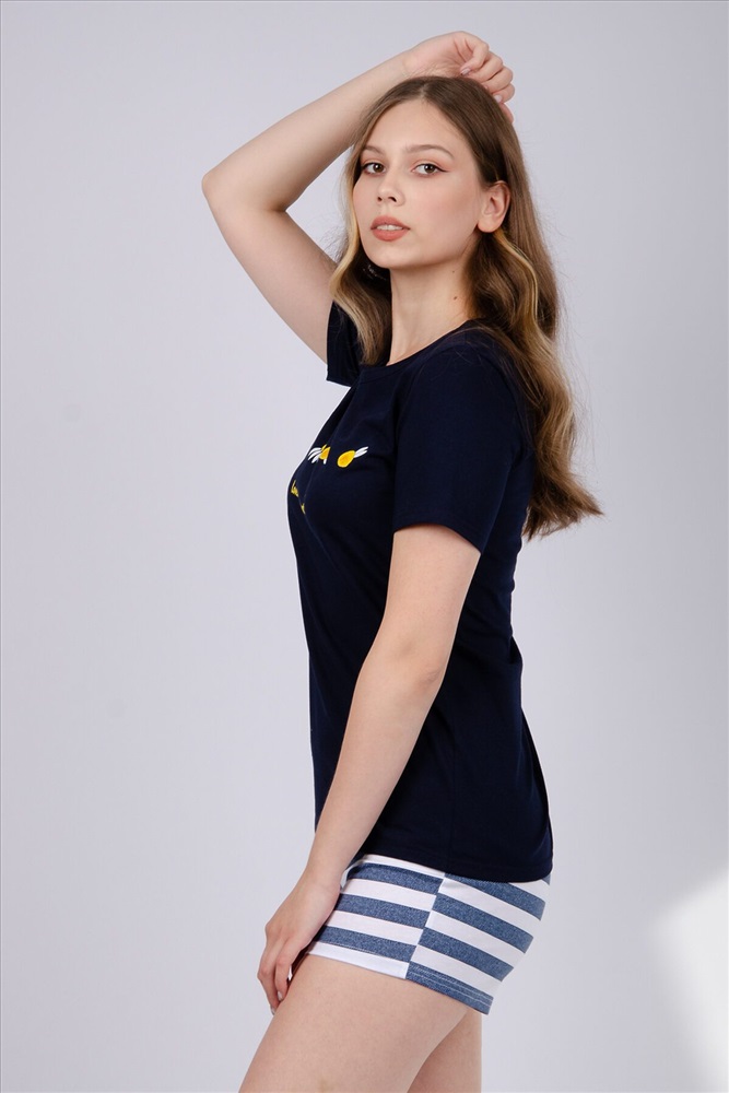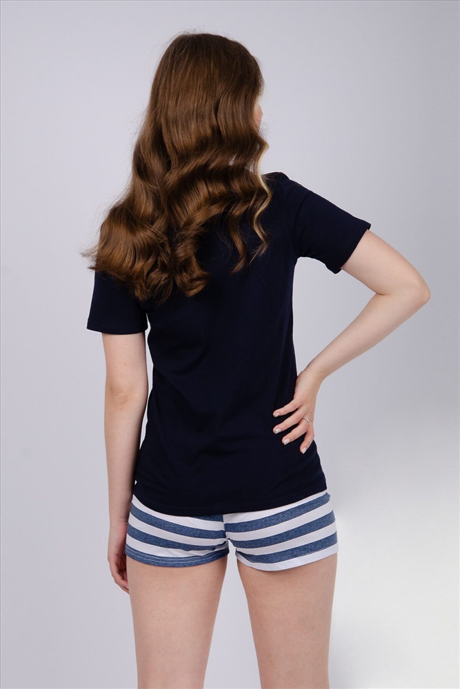 ID товара: 979150 Состав: Хлопок 100% Сезон: Демисезон Длина: Средняя Фасон: Полуприлегающий Рукав: короткие Декоративные элементы: Принт Основная ткань: Хлопок Вид ткани: Кулирка Страна бренда: Россия Страна производства: Россия Пижама женская с шортами 100% хлопок . Костюм трикотажный состоит и футболки и шорт. Наш пижамный комплект ивановский трикотаж выполнен из мягкого хлопка , и прекрасно подойдет , как женская пижама летняя для сна и , как домашняя одежда для дома. Комментарии к товару