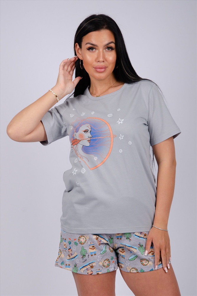 ВНИМАНИЕ!!! Расцветки в ассортименте, внешний вид изделия может отличаться от представленного на фото. Домашний костюм женский из 100% хлопка. Костюм трикотажный состоит и футболки и шорт с карманами. Наш пижамный комплект из футболки и шорт выполнен из мягкого хлопка, и прекрасно подойдет, как женская пижама для сна и, как домашняя одежда для дома.