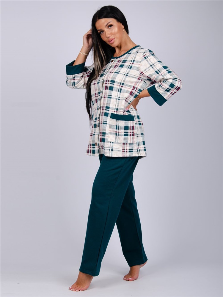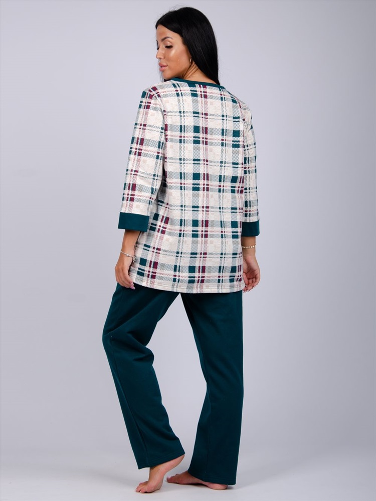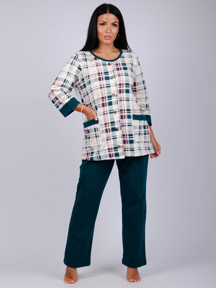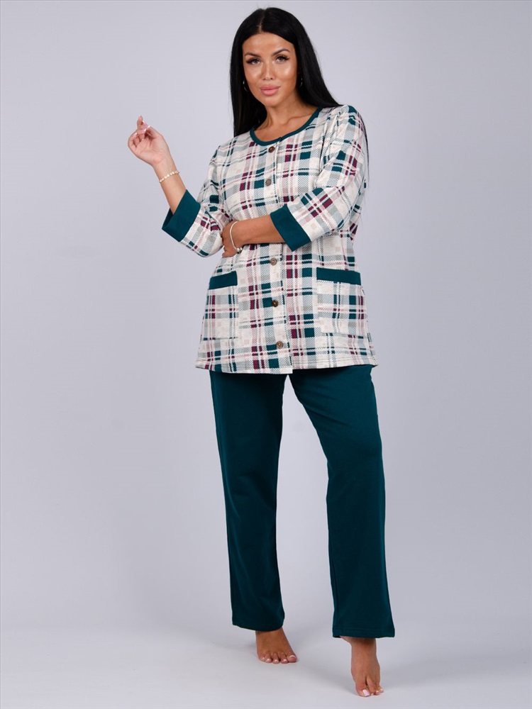 Застежка: пуговицы Этот комплект станет отличным выбором для холодных зимних вечеров, когда вам хочется обернуться теплом и комфортом. Мягкий и приятный на ощупь хлопок создает уютную атмосферу, что делает пижаму идеальной для носки как дома, так и на даче. Широкие брюки не сковывают движения, а легкий дизайн позволяет не ощущать дискомфорта во время сна.
