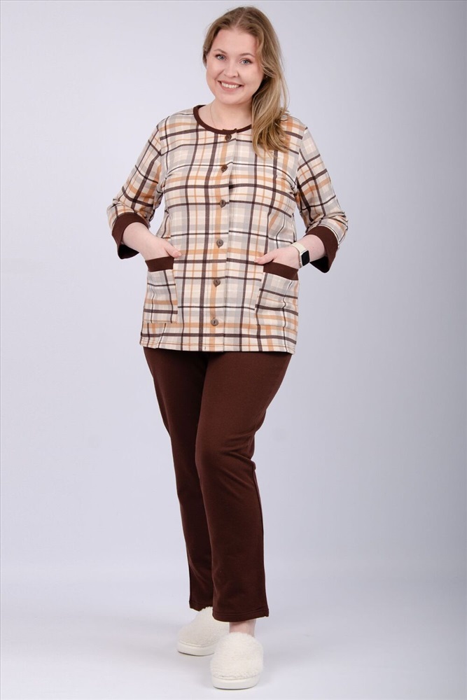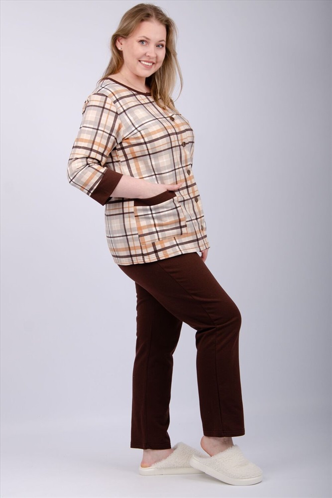 Застежка: пуговицы Эта уютная пижама создана специально для комфортного отдыха и сна. Она выполнена из мягкого хлопка, который обеспечивает тепло и комфорт в холодное время года. В комплект входят штаны и кофта. Свободный крой не стесняет движений и позволяет чувствовать себя комфортно во время сна или домашнего отдыха. Материал пижамы 100% хлопок, натуральный и гипоаллергенный. Это гарантирует безопасность и комфорт при носке. Начес внутри пижамы создает дополнительный слой тепла, что особенно актуально в зимний период.