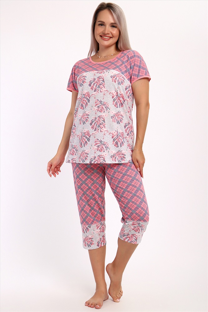 Состав: 100% хлопок Модель: Пижама Вереск Тип товара: пижама с бриджами Материал: кулирка | кулирка Бренд: Натали Суслова Назначение: для дома НДС: 5% Особенности: на резинке Рейтинг: Рейтинг 4 и выше Рисунок: цветы Рукав: короткий рукав Сезонность: лето | осень | весна | зима Силуэт: прямой Стиль: домашний Кофта свободного покроя со спущенной проймой, бейка по горловине и пройме обработана мережкой, бриджи комбинированные снизу Таблица размеров и весакофта